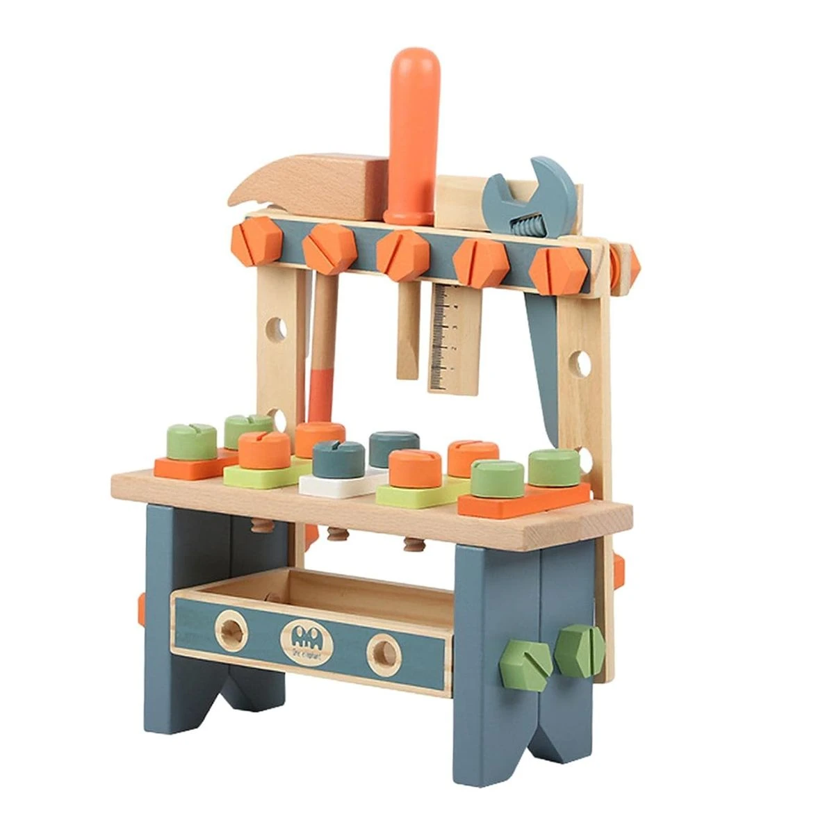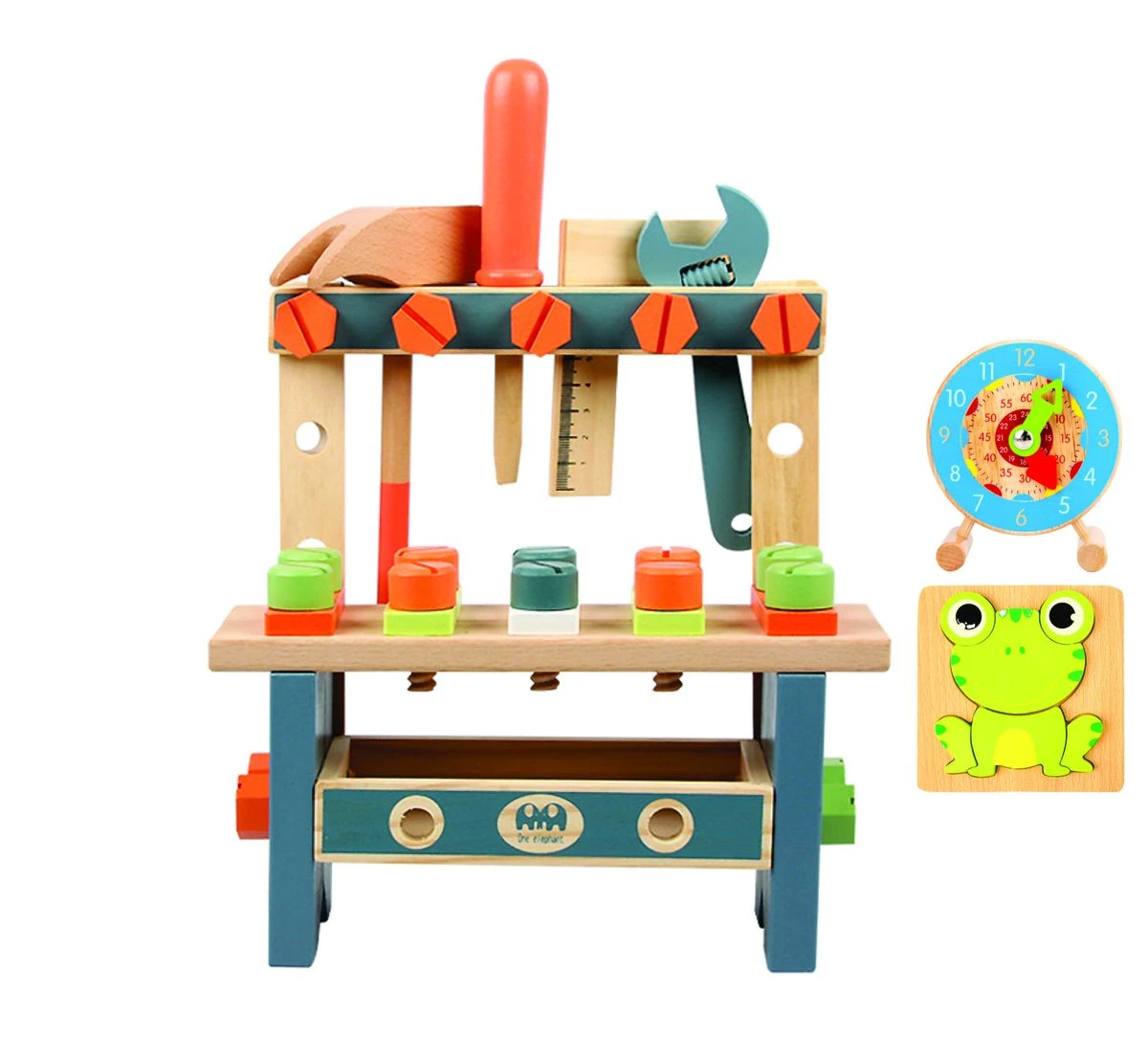 Let children nurture their imagination and engage in pretend DIY projects with our wooden toy workbench. Equipped with a toy hammer, saw, table saw, wrench, screwdriver, screws, nuts, bolts, gears, and ruler, this complete wooden tool set offers endless building play possibilities. It's the perfect screen-free fun option for kids to enjoy and enhance their creativity. Spark imagination with this vibrant wooden workbench, complete with a variety of features and wooden tools for endless playtime. Children will explore the world of tools and learn how they work, improving hand-eye coordination, motor skills, and fostering creativity. Let their imaginations soar as they engage in immersive role-playing sessions. The Varbertos wooden workbench is crafted from high-quality wood, prioritizing durability and safety. The smooth surface and rounded edges eliminate any potential splinters, ensuring a safe play environment for your children at this tool bench. Our wooden workbench is easy to assemble using the included woodworking tools, with no need for actual metal screws or nuts. Children can enjoy the fun of taking it apart and putting it back together. In addition, this workbench features a handy storage compartment underneath, perfect for keeping accessories organized. This pretend play workbench is an excellent educational toy that teaches children how to use tools. It makes a perfect gift for Children's Day, birthdays, rewards, prizes, Christmas, New Year's, and other special occasions. What's in the box 1 x Wooden Play Tool Workbench Set 1 x Watch toy 1 x Puzzles |