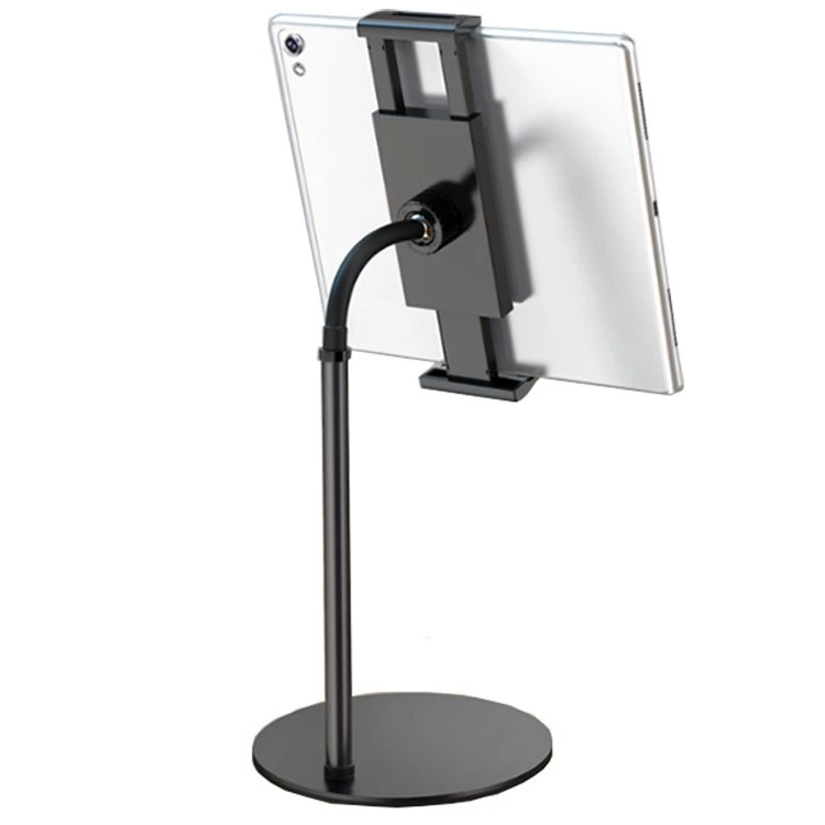 This cell phone stand for desk is ergonomically designed, with comfortable viewing angle. An iphone stand that's easily adjustable between 18 to 21.5 cm (3.5 cm range) angle from 5 to 85 Stylish adjustable phone holder for desk f eaturing a reserved charging hole for efficient cable management, this stand ensures no concerns about bending or tipping. A must-have among phone accessories. Our cell phone stand for the desk features a weighted anti-slip base and an aluminum alloy rod, ensuring stability for various devices. The design is ideal for an iPhone holder stand or a versatile cell phone holder bed. iPad stand for desk features an anti-slip design, the pad back and bottom fully covered in skid-resistant silicone. This desk phone holder stand offers secure grip for maximum protection against scratches and slides. What's in the box 1 x Table stand |