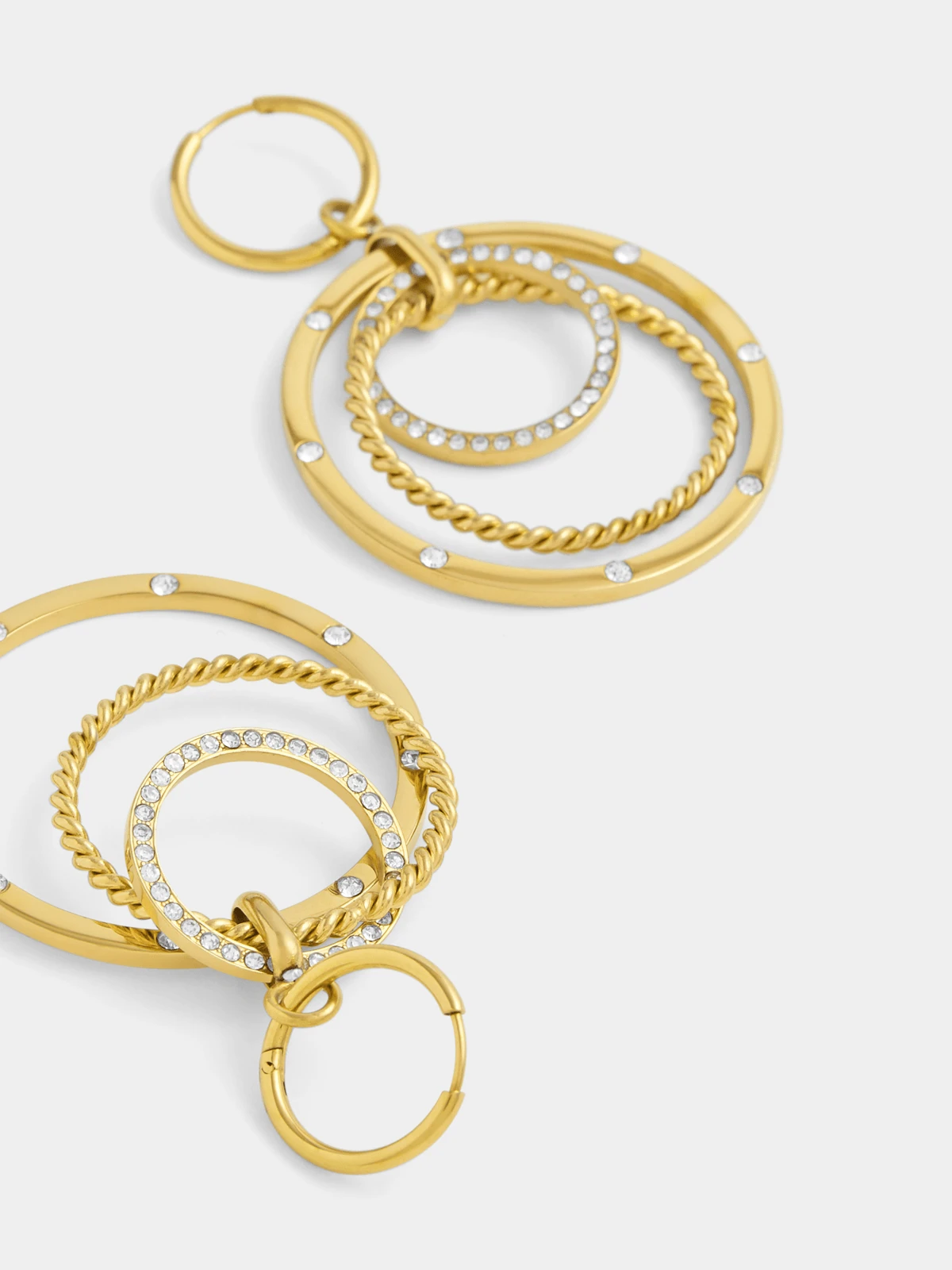 Expertly crafted in Gold Plated Stainless Steel, these glamorous trinity drop hoop earrings glitter with pavé set Cubic Zirconia. All Tempo Jewellery is hypoallergenic, waterproof and durable, boasting a 1-year guarantee. Gemstone Cubic zirconia Stone shape Round Dimensions Big ring: 35*1.8mm Middle ring: 27*2mm Small ring: 18.8*1.8mm Material composition Stainless Steel Fibre content STAINLESS STEEL Weight 12.04g Stone colour Clear Material colour Gold Plated |