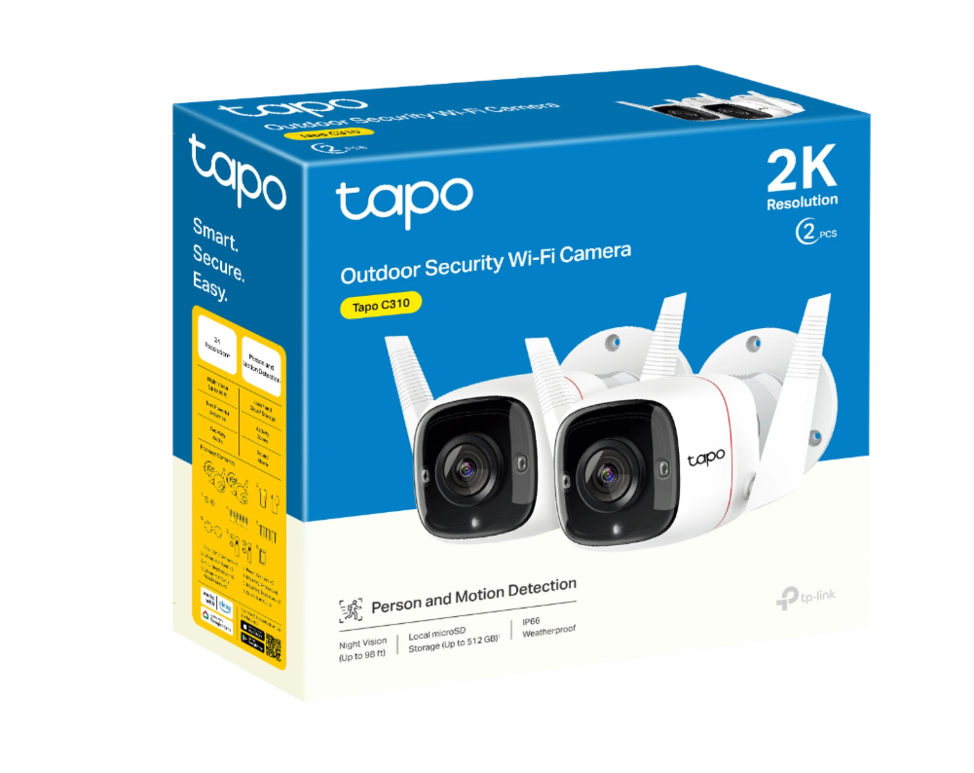 Ultra-high-definition 3MP Two-way audio Voice control Local storage through microSD card Sound and light alarm Weatherproof (IP66) Night vision 2 Year Warranty TP-Link Tapo C310 2-Pack Outdoor Security WiFi CameraSecure your home with the TP-Link Tapo C310 2-Pack Outdoor Security WiFi Camera, designed to keep you connected and protected around the clock. Experience ultra-clear 3MP HD video that captures every detail, day or night, thanks to advanced night vision. Stay in touch with two-way audio, allowing you to hear and speak to visitors or deter unwanted guests remotely. This weatherproof camera thrives in any outdoor condition, while smart voice control via Alexa or Google Assistant makes monitoring effortless. With local microSD storage and cloud backup, your footage stays safe and accessible. Plus, the sound and light alarm adds an extra layer of protection for your peace of mind. |