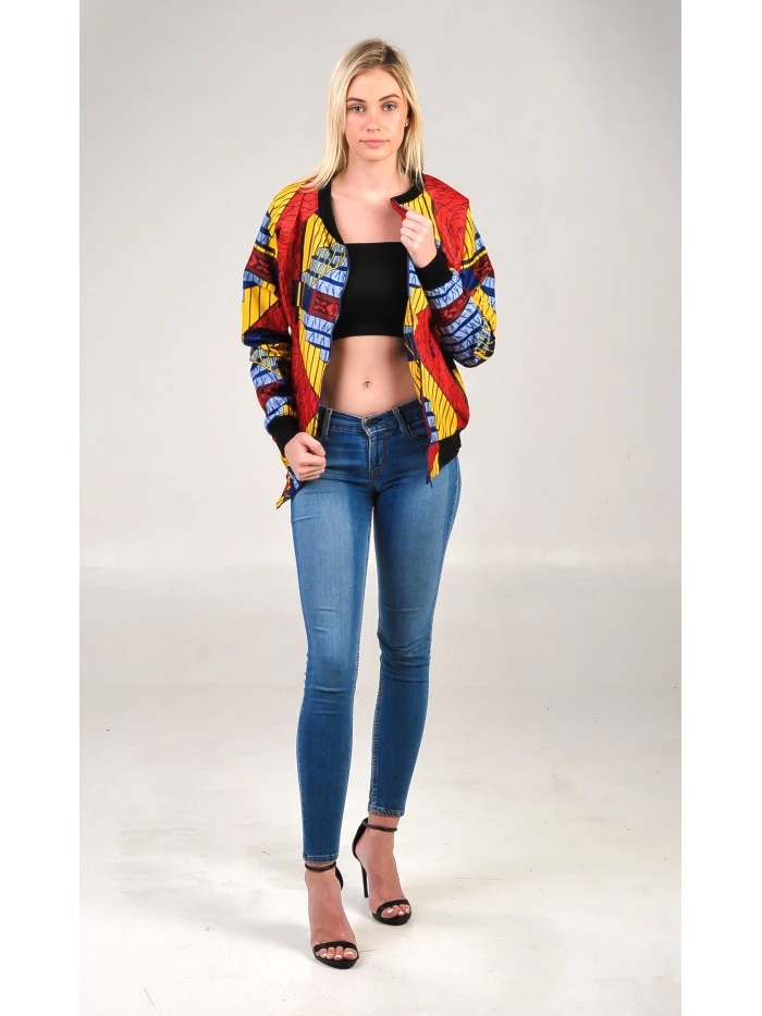 This Ufefe Afriprint Bomberr is a Java print; the wax is used as a laminated coating over the cotton fibers to give it that nice glossy feel Guaranteed Real African print 100% cotton / 117 gr/m² Fabrics come in a standard size of 6yards (5.5mtrs) |