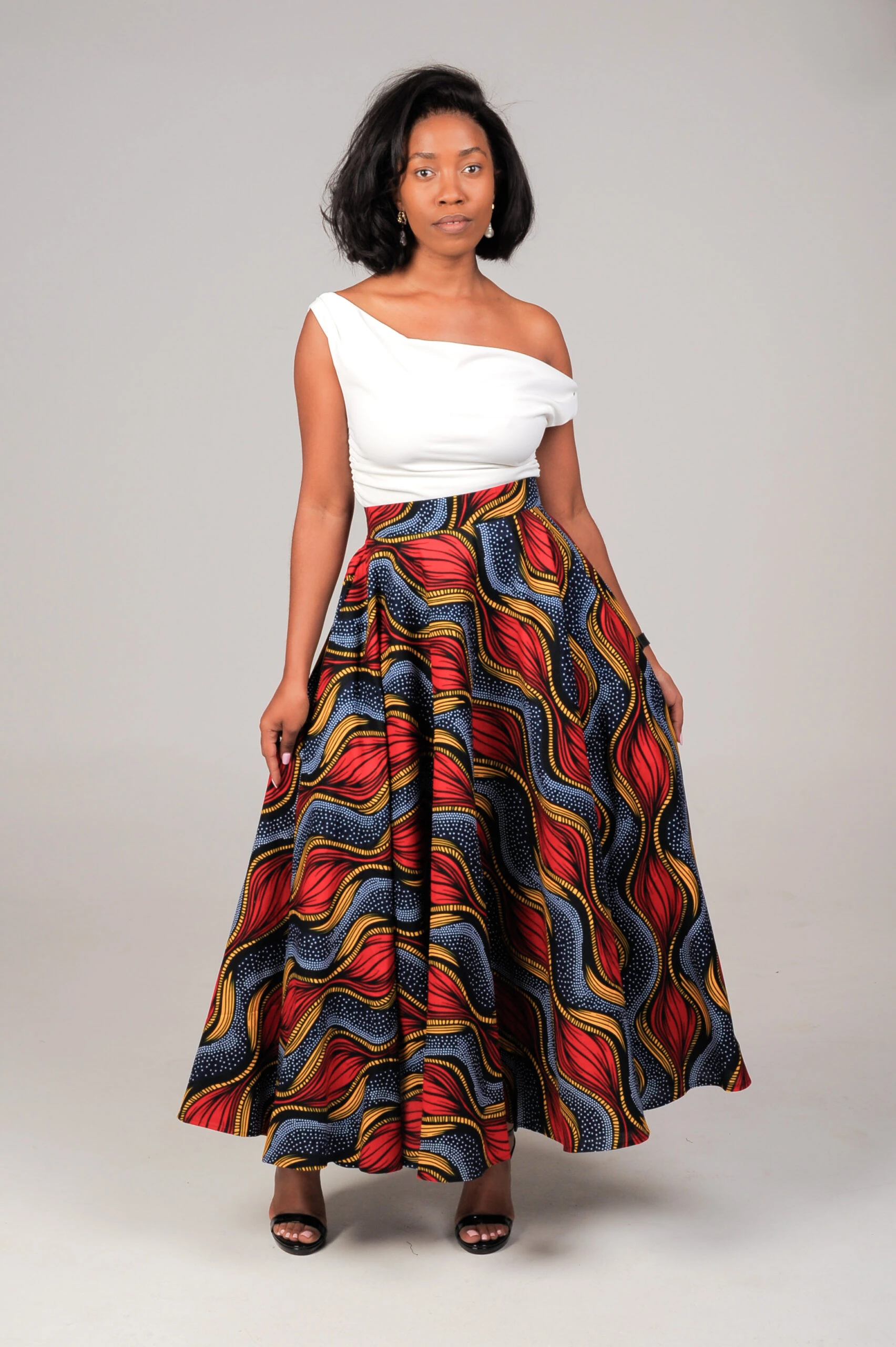 The Umfula African Print Flare Skirt is every woman’s staple item. This Umfula African Print Flare Skirt can be worn with many styles of tops and can be worn all year round with boots, heels, or flats |