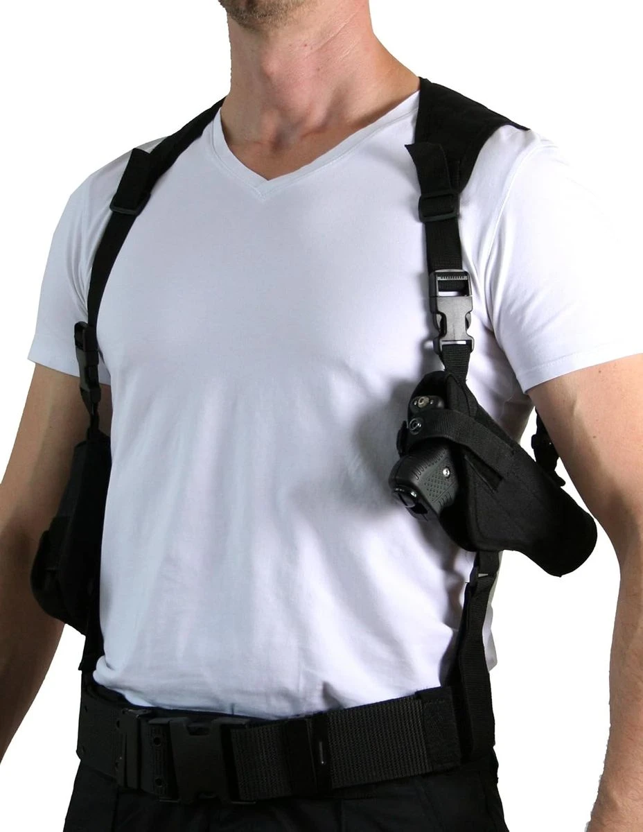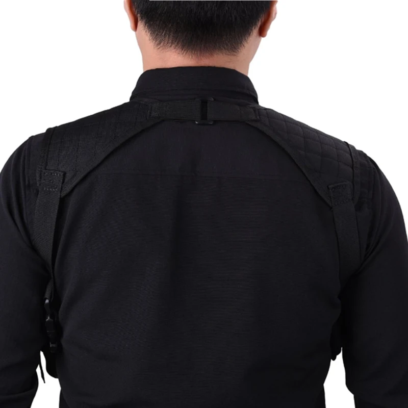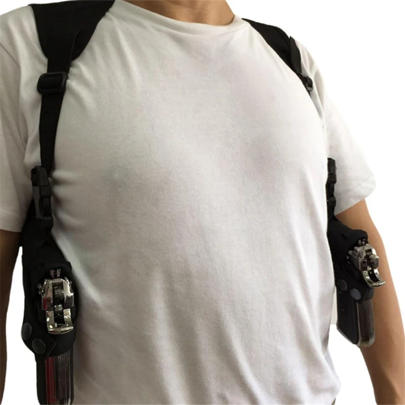 Left Right Hand Nylon Holster Gun under Arm Shoulder Double Gun Holster Pouch Made from Lightweight Durable Polyester with Pvc Coating and Very Well Designed Shoulder Holster with Loaded Features Two Holsters Size Can Be Adjusted With Adjustable Shoulder Straps and Magic Strape to Ensure That You Can Ensure a Perfect Fit, While Still Having the Required Range of Motion When Performing Tasks. The Shoulder Pad is Designed with Molle System, and the Length Can Be Adjusted Freely According to Individual Requirements. The Armpit Shoulder Cover is a Perfect Accessory for Any Military or Law Enforcement Personnel; If Necessary, You Can Swap the Pouch and Holster from Left to Right. It is Applicable to Hiking, Shooting, Outdoor Sports, Martial Arts, Extreme Challenge, Hunting, Etc. What's in the box 1 x Underarm Gun holster |