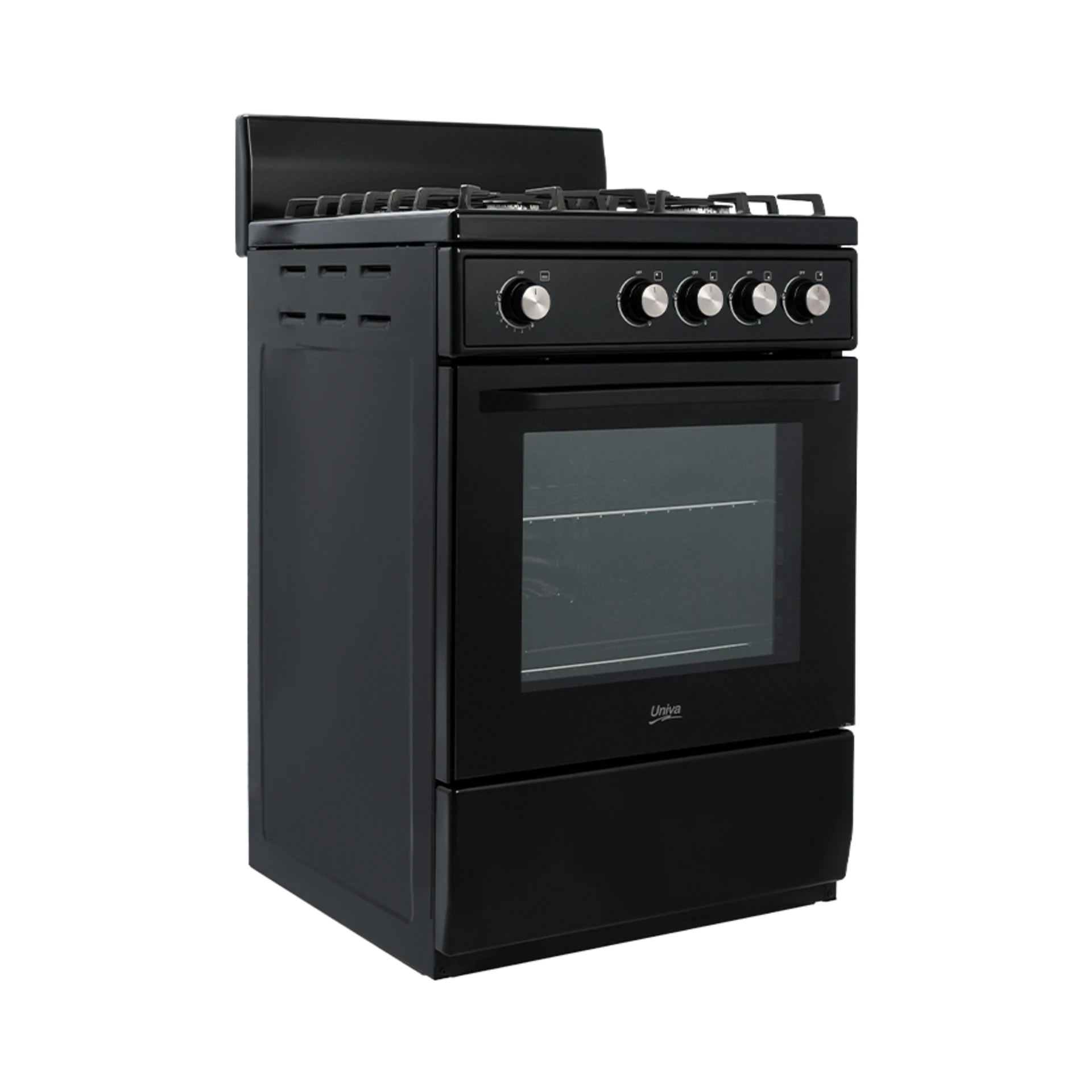 84L oven capacity Gas oven with 4 alum burners 60cm gas stove Glass control panel LPGSASA approved Stable removable cast iron pot grids Black 2 Year Warranty Univa 4 Burner Gas Stove Black 60cmLarge, reliable and dynamic. Enjoy the instant heat and efficiency of cooking and baking with gas, no electricity needed. High quality gas burners and a superior cast iron pan grids ensure a pleasant cooking experience. This Univa gas stove combines practical functionality with elegant design elements, making it a versatile and reliable choice for any kitchen environment. Oven Capacity: With a generous 84-liter capacity, the gas oven allows for baking, roasting, and cooking larger meals with ease, making it suitable for both everyday cooking and entertaining. Burner Configuration: The stove is equipped with four aluminum burners, ensuring efficient heat distribution and control during cooking. This setup is ideal for preparing multiple dishes simultaneously, enhancing cooking efficiency. Control Panel: Featuring a sleek glass control panel, the stove offers intuitive operation and adds a touch of sophistication to your kitchen decor. The panel makes it easy to adjust settings and monitor cooking progress with clarity. Safety and Approval: LPGSASA approval ensures that the stove meets stringent safety and quality standards, providing peace of mind for users concerned with safety and compliance. Pot Grids: The stable removable cast iron pot grids not only enhance stability during cooking but also offer durability and support for various sizes of pots and pans, accommodating different cooking needs. Design: Finished in black, the stove complements modern kitchen designs, offering a sleek and contemporary appearance that blends well with various kitchen aesthetics. |