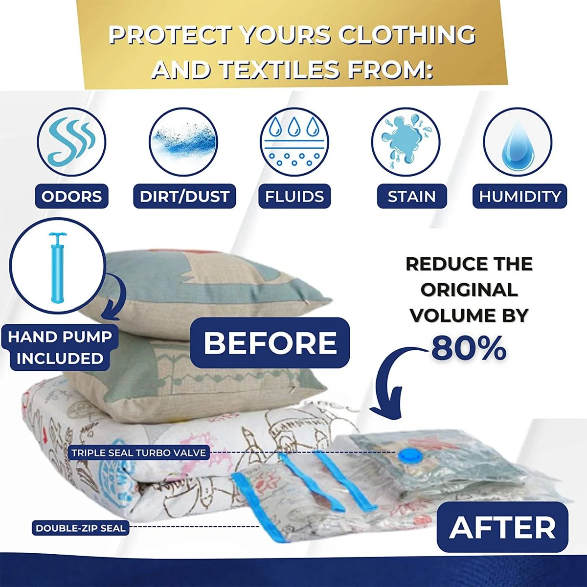 Features: - perfect vacuum bag set ā our set has 20 premium vacuum bags for storage in various sizes to meet different needs. Our set of space saver bags contains 5 small bags (40 x 60 cm), 5 medium bags (50 x 70 cm), 5 large bags (60 x 80 cm), 5 jumbo bags (80 x 100 cm), and a hand pump. Can be used to store away your clothes, coats, duvet, bed sheets, towels, blankets, and more. - save up to 80% of space - without having to clean out your closet! Our spacesaver vacuum bags for storage of clothing, blankets are an ideal solution for adding more storage space to your wardrobes, closets, garages, basements, lofts, and suitcases. Avoid using plastic bins with lids, or a bulky storage tote. Use these deflatable storage vacuum bags instead. - wide application ā our vacuum storage bags are essentials for both household space saving and travel organization. Function as storage bags for clothes and compression bags for travel - perfect for clothes organizing ā our space saver bags help keep your items fresh and dry without worry. It is the best choice for you to organise clothes - hand pump included for easy use - works with standard vacuum cleaner. Simply put the items in our storage vacuum bag, seal the zipper, suck out the air, close the lid. You can also use the pump included to easily vacuum store your items What's in the box 5 x Small Vacuum Bags 40 x 60 Cm 5 x Medium Vacuum Bags 50 x 70 Cm 5 x Large Vacuum, Bags 60 x 80 Cm 5 x Jumbo Vacuum Bags 80 x 100 Cm 1 x Hand Pump |