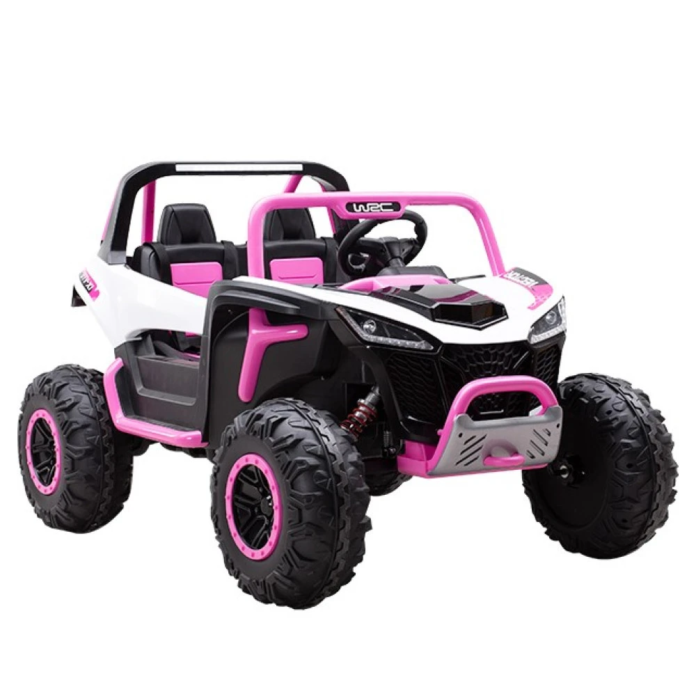 24V rechargeable ride on car music player rubber wheels opening doors available in pink, blue or green suitable for kids aged 2 to 8 years |