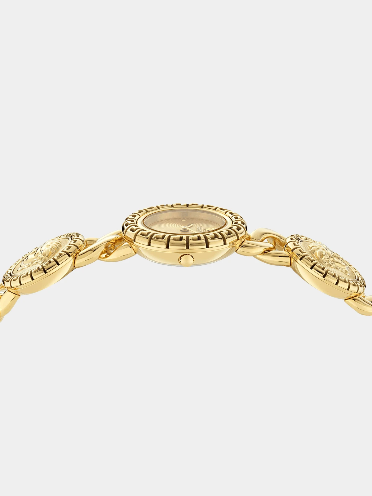 This elegant jewellery timepiece is back, now with brand new details. Its unique petite case is enriched with the tubular Greca on top ring, jewellery bracelet AND decorative plaques with bold 3d Medusa at 12h and 6h. This eye-catching collection has been executed with diamonds indexes on one version. Watch dial shape Round Material composition Stainless Steel Fibre content STAINLESS STEEL Waterproof Water Resistant Dial colour Gold Strap colour Gold Material colour Gold Plated Watch case size 28mm Dial shape Round |