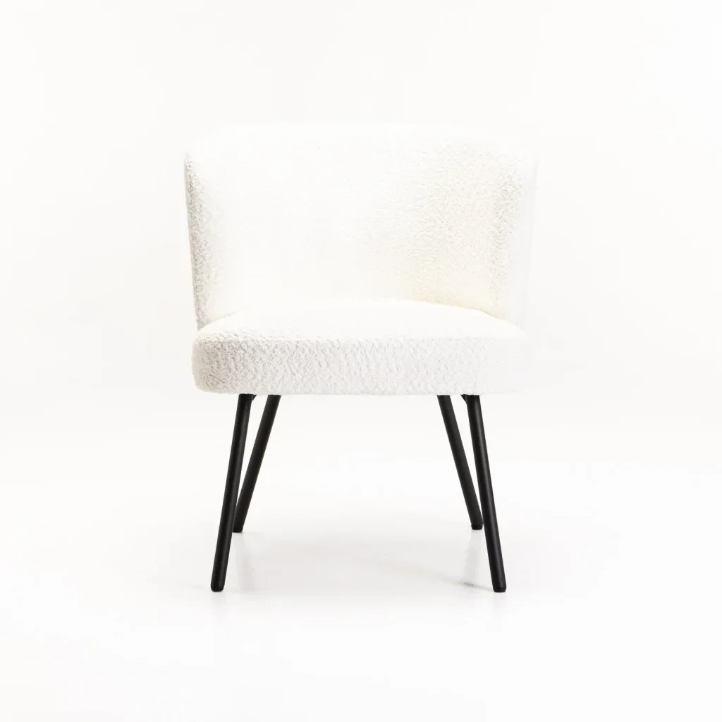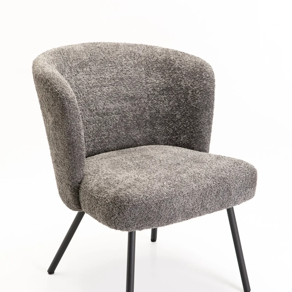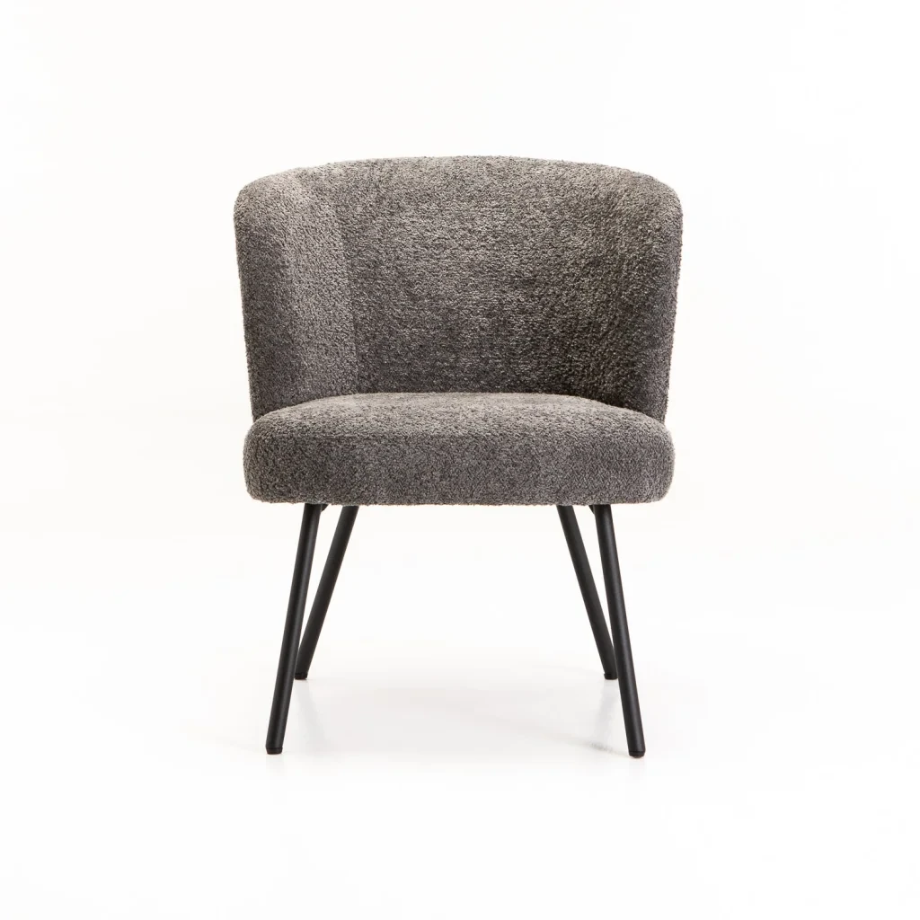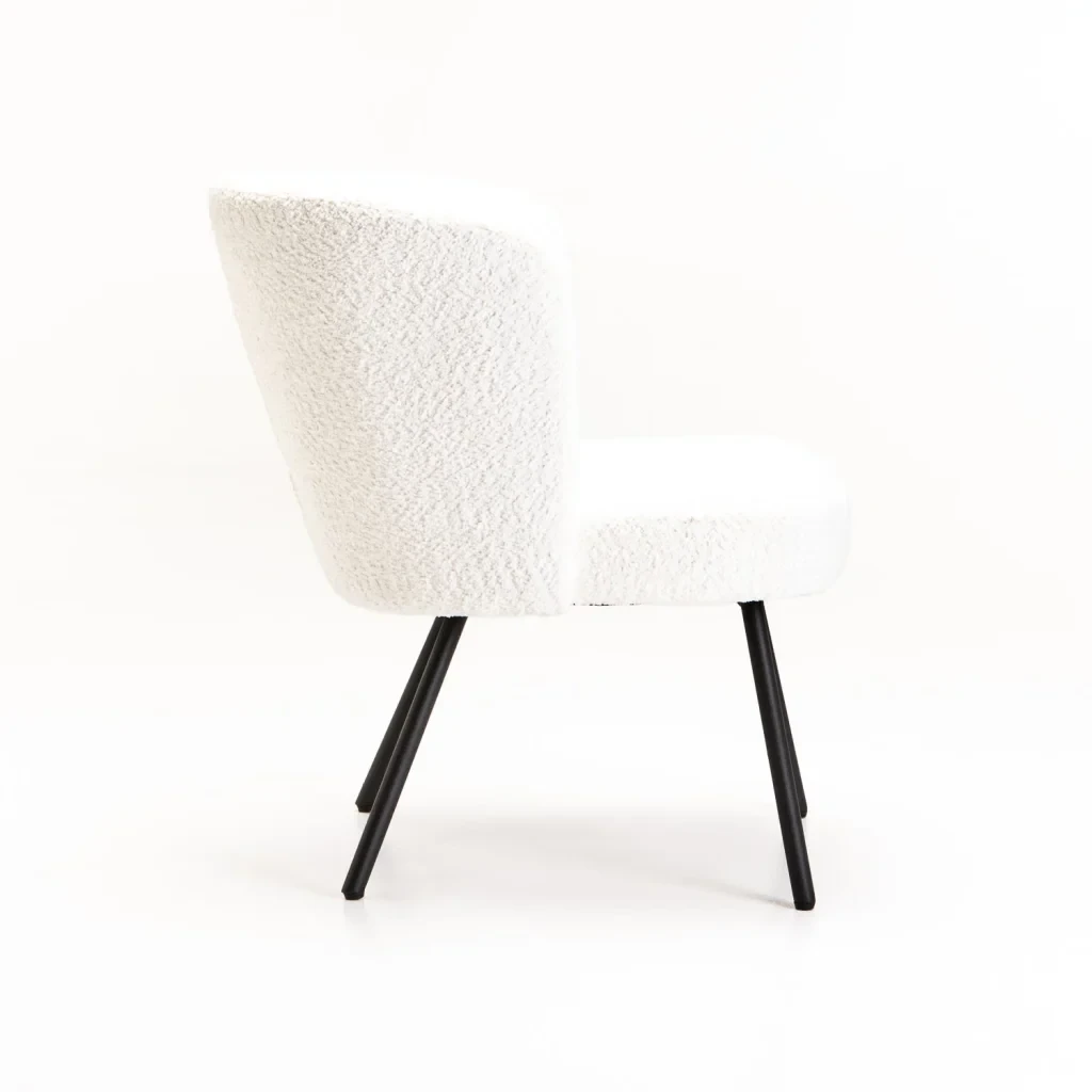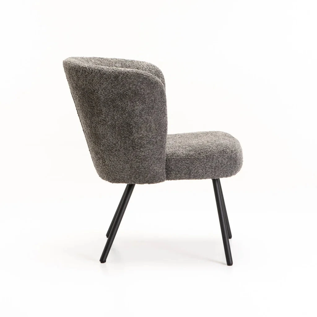 With its sculptural silhouette and inviting texture, the Vienna Fabric Chair brings a touch of modern elegance to any space. Upholstered in a soft, luxurious fabric with a rich, luxurious finish, it offers exceptional comfort and style. The gently curved backrest wraps around you for supportive seating, while the slim black powder-coated metal legs provide a clean, contemporary contrast. Perfect for in any room as a chic occasional chair. Additional Information:Material Frame : Metal Material Legs : Powder Coated Metal Legs Seat Construction : Foam |