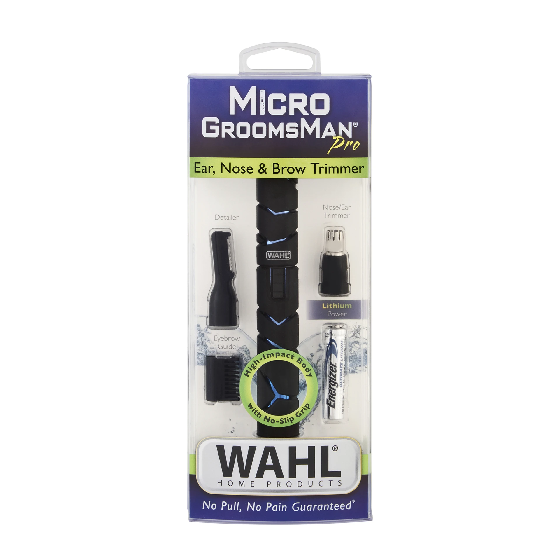 Twist on & off attachments0.144 Rugged, protective & tactical grip Ear, nose & eyebrow trimmer Groom and detail eyebrows Powered by Lithium-Ion AAA battery Compact & lightweight Dry attachments before storing 2 interchangeable grooming heads Wahl Micro Groomsman Pro Battery Operated TrimmerOwn your look with the Wahl Micro Groomsman Pro. Wahlās most rugged pen trimmer allows you to trim and detail your ear, nose & brow hairs. Lightweight, compact, & cased in a tactical grip, this personal trimmer is a great travel companion. Two interchangeable grooming heads rotate into place, to allow for multi-purpose facial maintenance. The eyebrow attachment comes with a guide-comb, allowing you to control the length for a precise finish. The attachments are rinseable, eliminating the mess and fuss that comes with cleaning up. We recommend that you dry the attachments before storing. This trimmer uses a AAA lithium-ion battery, powering your grooming journey. Grooming? Traveling? Secret Santa or Christmas? The Micro Groomsman Pro is the perfect gift for any occasion. Usage instructions are included. Usage - Twist on & off rinseable attachments for easy care and maintenance Performance - Powered by a rotary motor and lithium-ion AAA battery Grip - Housed in a rugged, protective, tactical grip Specified areas - Ear, nose & eyebrow trimmer Attachments - 2 x interchangeable grooming heads Rotary attachment - Trim nose & ear hairs Vertical attachment - Groom & detail eyebrows Eyebrow guide - Used with vertical attachment for the perfect length Portable - Compact and lightweight to groom-on-the-go Storage - Ensure attachments are dry before storing Suitability - All hair types |