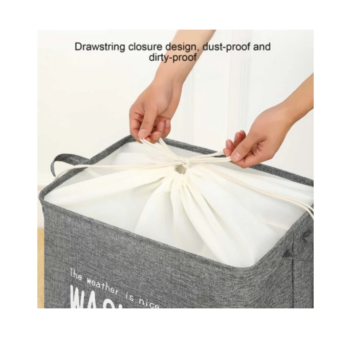 Large 75L Collapsible Laundry Bag Size 75L Inner adopt PEVA waterproof coating, keeps stored items dry. Collapsible Smart Design for Compact Storage and space saving. The Laundry bag is collapsible to that you can fold it flat but easy storage and when travelling. Specifications: - Material: Made from Cotton and Linen - Size: 54x41x31cm - Colour: Grey What's in the box 1 x Collapsible Laundry Bag |
