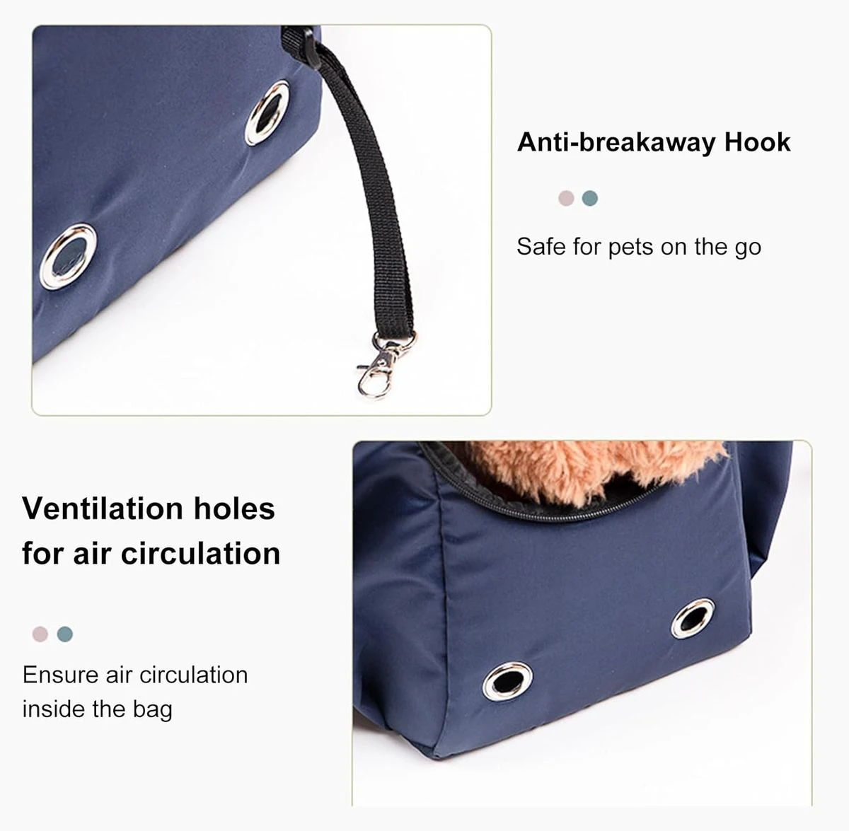 It is 39 x 20 x 60 cm, it is suitable for all kinds of cats, chihuahuas, teddy, bomeg, fawn dogs, etc. Our waterproof pet bag uses high quality polyester fabric and breathable mesh, lightweight, fashionable, comfortable, convenient and easy to use. Design for the best and most convenient travel experience for you and your cats and dogs, it also comes with a sturdy pad and mesh windows for ventilation, your pet can breathe fresh air and enjoy the view. With escape-proof metal locking strap inside to connect with your pet's collar to escape jumping suddenly while traveling. There are 4 pockets inside the handbag, which are scientifically distributed to improve space use and facilitate access to things. This cat dog carrier bag can be used as a handbag or shoulder bag. Tote design with locking zippers on the top and double handles allows for multiple carrying options. Easy in/out. Take pets out to see the world, the large space makes the pet's vision no longer bound when playing, and can also interact and soothe with the pet. Take a bag for shopping and travel, the three-dimensional square appearance + soft fabric brings a fluffy air touch, the pleated handle feels soft and comfortable. What's in the box 1 x Pet Carrier 1 x Grooming Comb 1 x Harness Seatbelt |