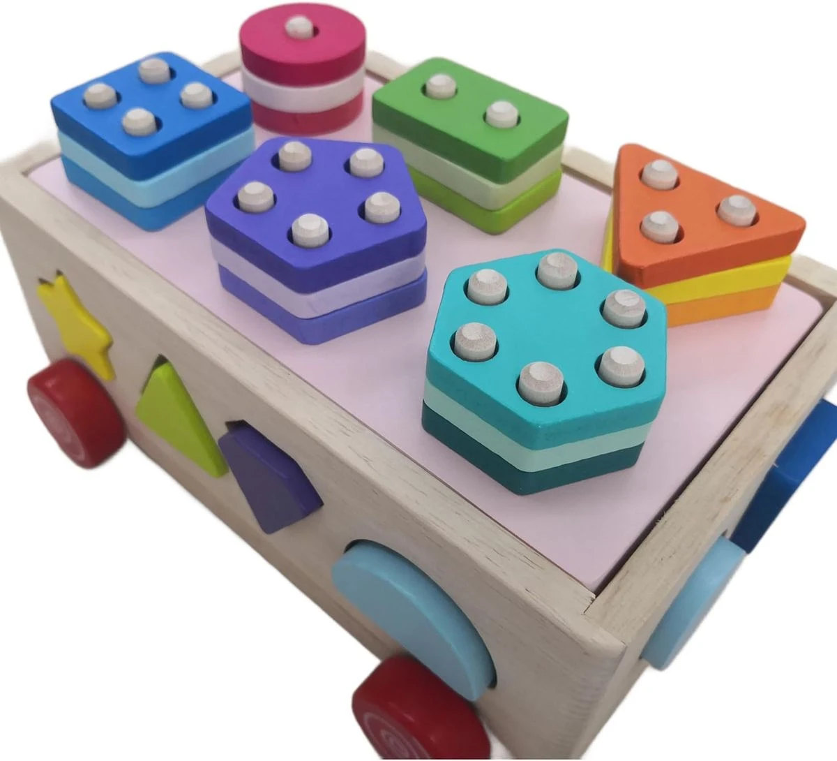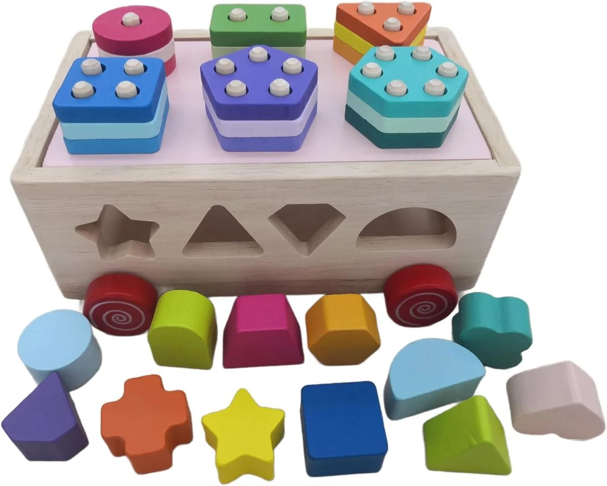 3 in 1 wooden shape sorting & stacking puzzle contains 12 different shape holes matching 18 geometric shapes blocks, and a wooden board with 6 groups of wooden dings and 18 gradient colored counting geometric blocks. It helps to build early shape, color, and size differentiation skills when babies try to match the blocks to the target or make various combinations. This multi-functional baby Montessori toy is a great gift for baby girls or baby boys aged 3+ years old . For young children, the benefits of this type of play are as follows, - Develop Hand-eye Coordination - Develop Fine Motor Skills - Develop Communication Skills - Enhance Logical Thinking Skills - Learn Shape And Color - Develop Crawling Ability. The wooden activity cube is an educational toy for Toddlers which can learn shape matching, organization, number recognition, etc. the shape matching game can improve the fine motor skill for babies . Stimulate your boys' and girls' imagination and promote physical and mental development. Your kids will love the bright colors, different geometric shapes, and charming design of this shape toy. The edges of this wooden puzzle are very smooth. It is a preschool learning toy for Toddlers 3+ year old , suitable for toddlers' hands, removable blocks easy to carry, and you can go wherever you want. It is a great choice for travel toys. We design every piece of block in the highest quality standards, without the risk of suffocation. This toddler learning toy is made of non-toxic wood and water-based paint. The edges of the Stacking Geometric Board and Blocks are smooth and won't harm your baby. It feels great to give this timeless toy as a gift to your children. It helps to make them smarter! Cultivate your baby's mind and heart,Great Montessori toys for toddlers. Babies and toddlers will enjoy the shape sorting game, and Various shapes will arouse children's curiosity and interest. This baby learning toys is the right choice for children's birthday, Christmas and New Year. What's in the box 1 x Shape Color Sorting Toy 1 x Watch toy 1 x Puzzles |