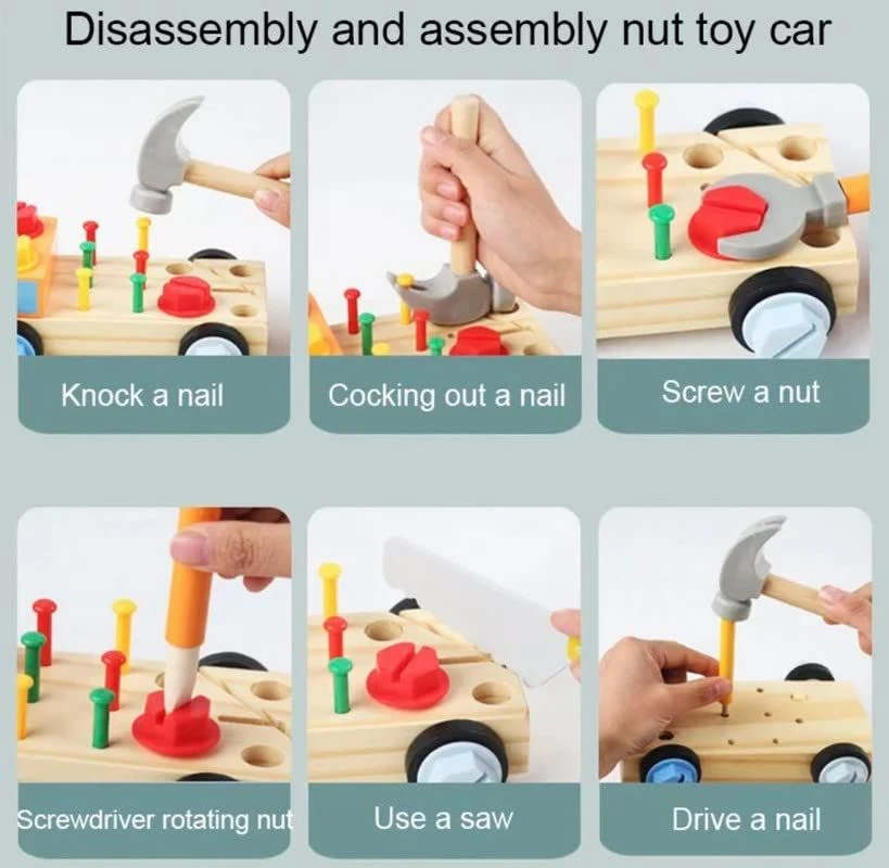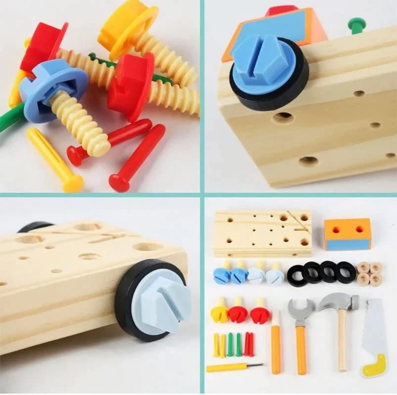 This wooden toy set is designed and manufactured according to teaching method. The set allows toddlers to learn practical skills such as using screwdrivers, wrenches and other tools while playing, thus gaining joy and confidence in the process. Activity chart is a sensory toy for babies that helps them to acquire basic cognitive skills. Light color contrasts allow children to recognize and perceive colors. The tool for children 2 years and older can be used in children's activities and promotes children's cooperation and communication skills. The children's tool set is made of natural wood, safe and durable. The edges and corners of the toy are carefully polished to protect baby's delicate hands. Made from PVC material, the screws are thick and large enough for little hands to hold. Your child can safely perform construction vehicle assembly and disassembly exercises while improving fine motor skills. The kids imitation tool set allows your child to discover the process of problem solving through play. Our screw board set is designed to turn the boring learning process into a creative and fun experience and is the best gift for kids and toddlers. It is the best toddler toy, the best birthday, Christmas or surprise gift What's in the box 1 x Mechanical screw toy set 1 x Watch toy 1 x Puzzles |