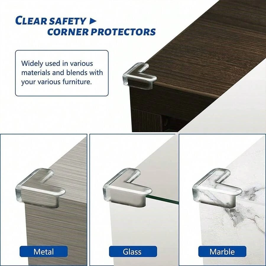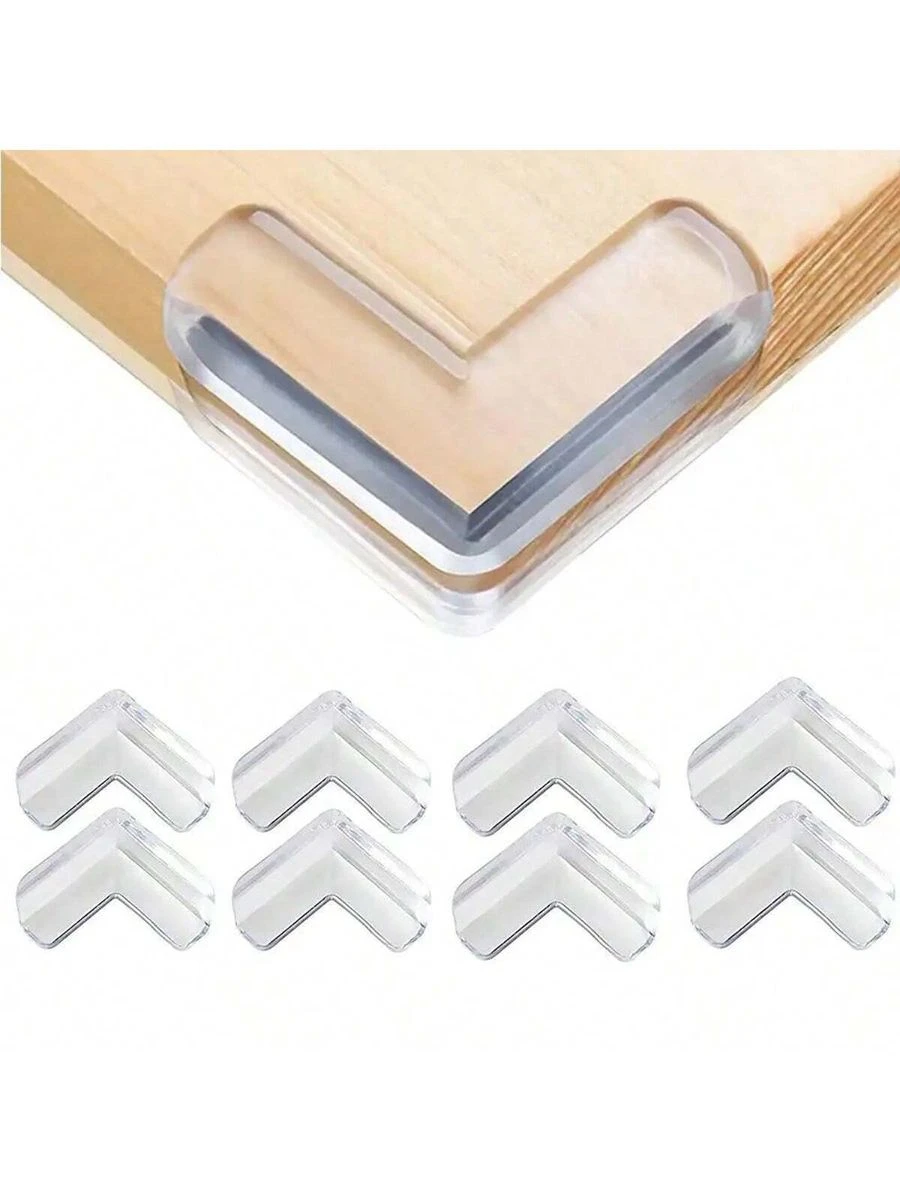 You will get 10pcs L shape clear corner protectors, which can meet your needs of daily use. High-quality Material: Our L-shaped corner cushions are made of high-quality PVC, durable, sturdy, thick, natural, eco-friendly, and not easy to break or tear, which can help babies and seniors avoid injury from sharp walls and tables. And our corner protectors are friendly to children. Easy to Install: Designed with double-sided adhesive tape, you just need to peel off the protective film and stick them on the clean table corner. If you want to remove the corner protectors, do not tear it off directly. You can use a hair dryer to soften the protective corner first and then tear it off slowly to prevent tearing the furniture. Wide Application: Our clear corner protectors can be widely used for desks, tables, walls, chairs, shelves, TV cabinets, beds, stairs furniture surfaces or other sharp edges, etc. The viscosity of the corner protector is very strong and can be pasted on most kinds of material, such as glass, cement, wood, metal, and tiles. Clear and Soft: Our L-shaped corner guards are transparent and soft, which can blend seamlessly with your furniture, keeping the original look of the furniture. These clear corner protectors can keep your kids safe from being hurt by sharp edges and corners around the house. What's in the box 10X L shape clear corner protectors |