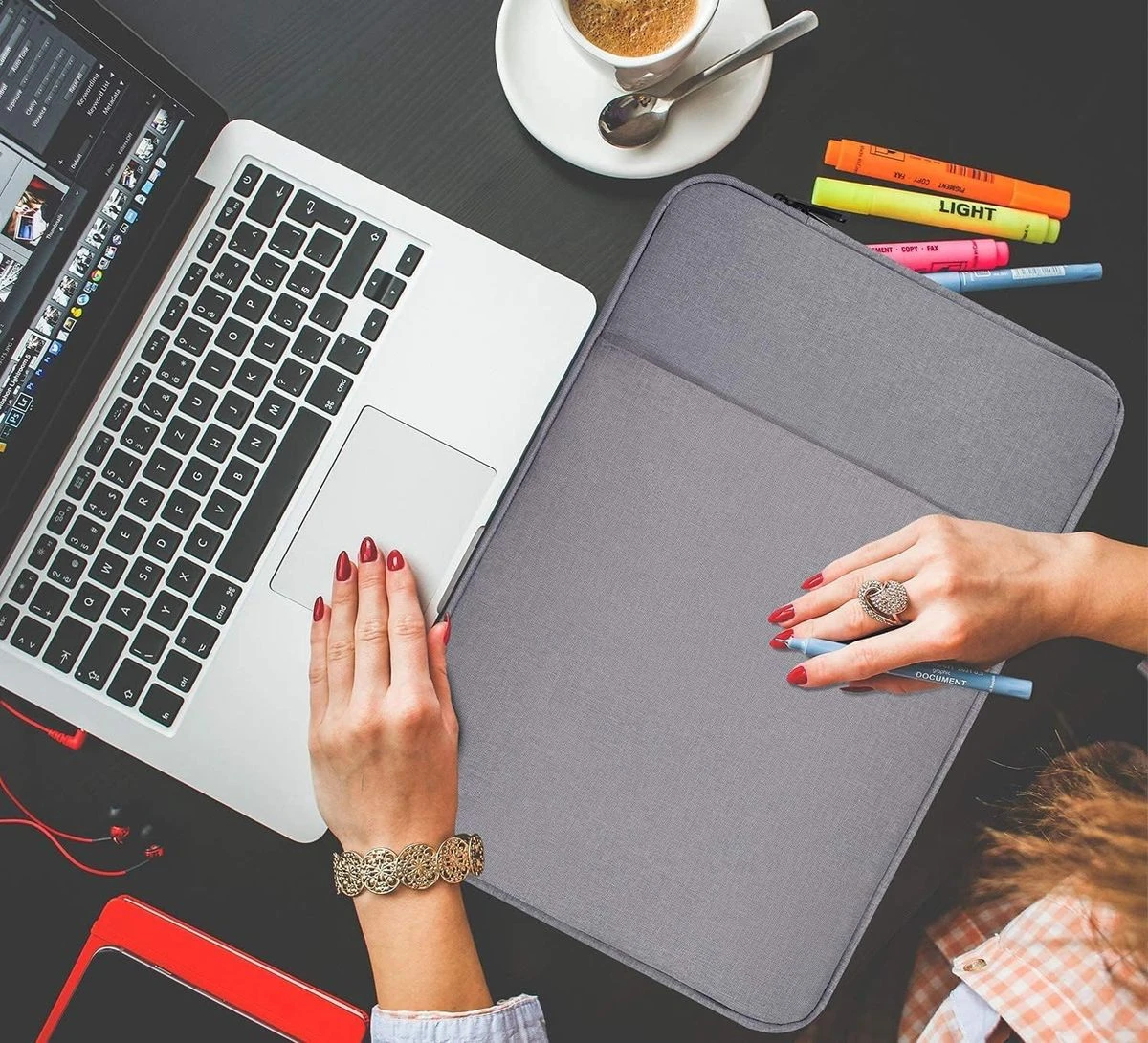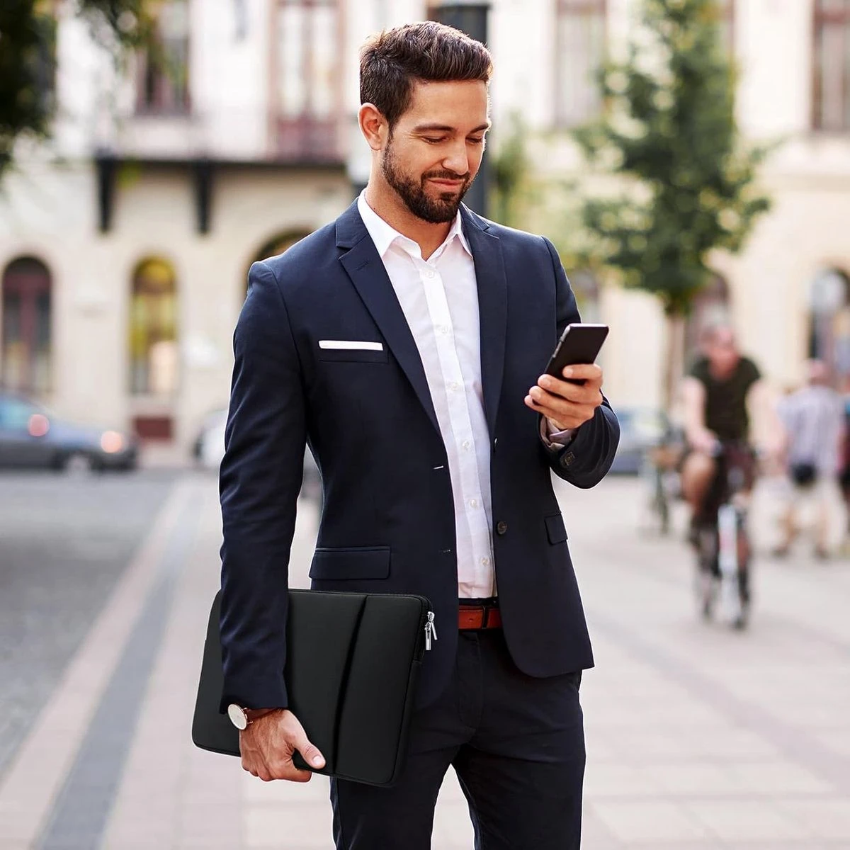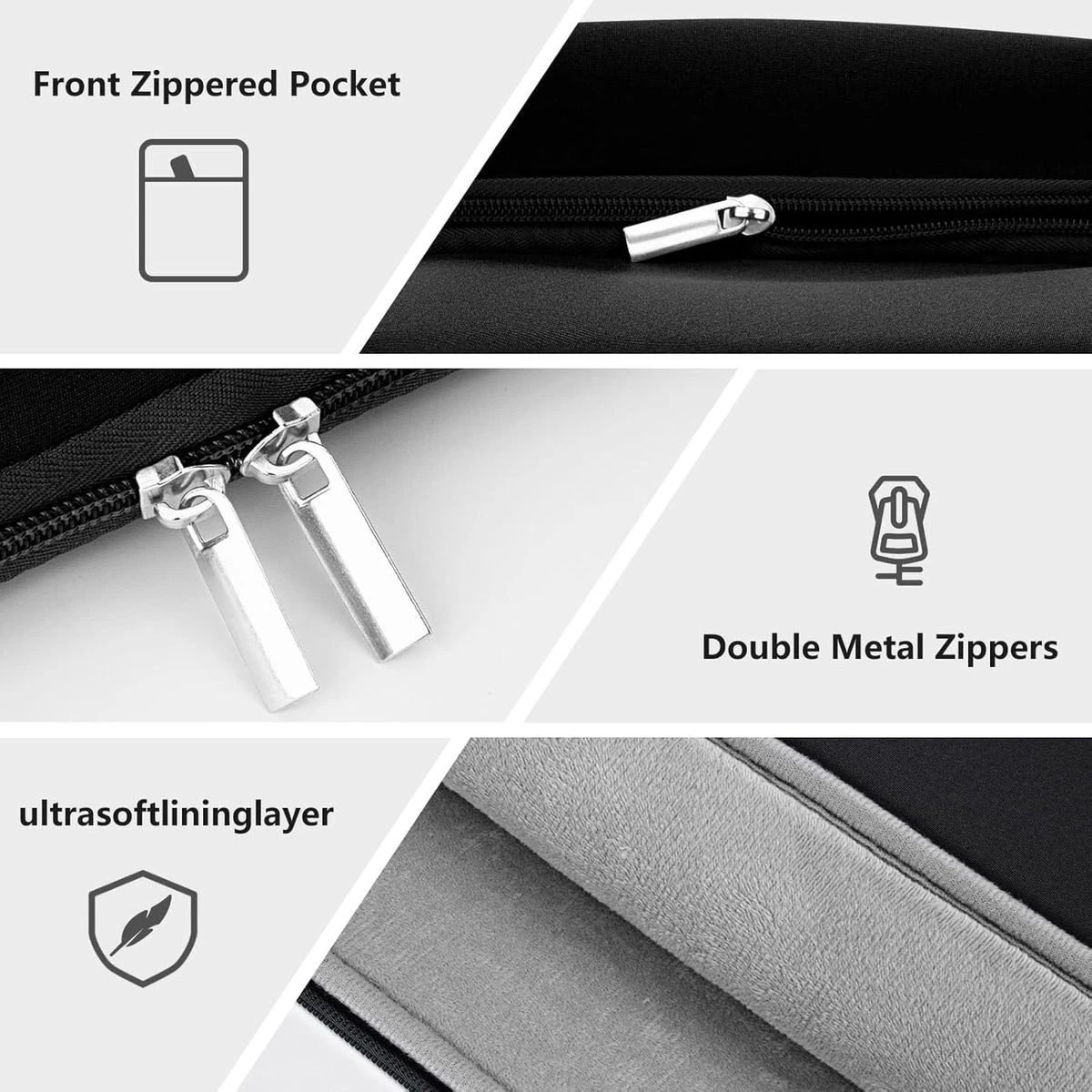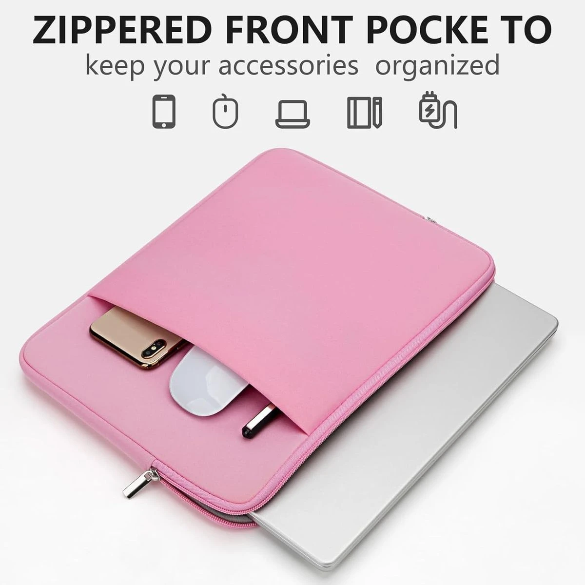 The outer layer is a soft polyester fabric that protects your laptop from dust, the padded foam as a middle layer designed to resist damage when dropped or bumped, the interior of the sleeve is an ultra-soft and fluffy material that can protect your laptop from accidental scratches. The deep front pocket is ideal for storing things like your tablet, chargers, phone, cables, mouse, pens, or other items you need quick access to. It can easily slide into your briefcase, backpack, or another bag without bulking it up. The deep front pocket is ideal for storing things like your tablet, chargers, phone, cables, mouse, pens, or other items you need quick access to. The laptop sleeve with pocket outer polyester fabric of the case enable you to carry your laptop / notebook / Ultrabook computer in a uniquely sleek style. This protective carrying sleeve case cover bag with pocket is ideal for you to take your laptop out. Slim and lightweight design allows the case to easily slide into a suitcase or backpack, dual top-loading metal zippers won't get stuck during use. The sleek and sturdy design of this sleeve ensures it protects your precious investment from dust and scratches. Features internal upgraded shock resistant bubble foam padding layer, better protect your valuable laptop from accidental scratches. You can alter how to carry depending on your needs. Allows you to switch between a laptop briefcase handbag and laptop sleeve bag. What's in the box 1 x Laptop sleeve case |