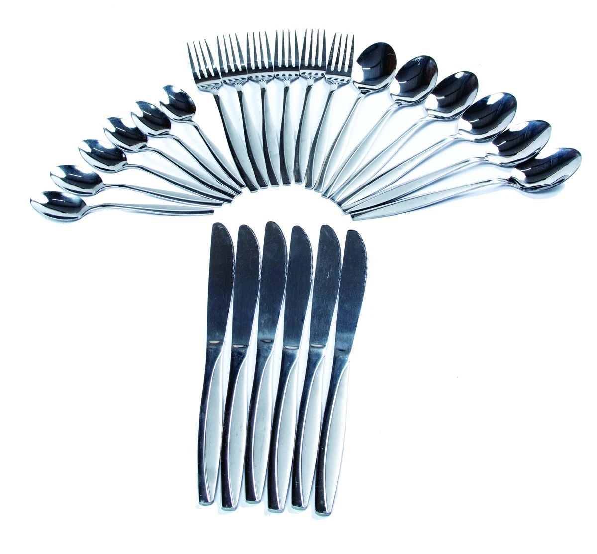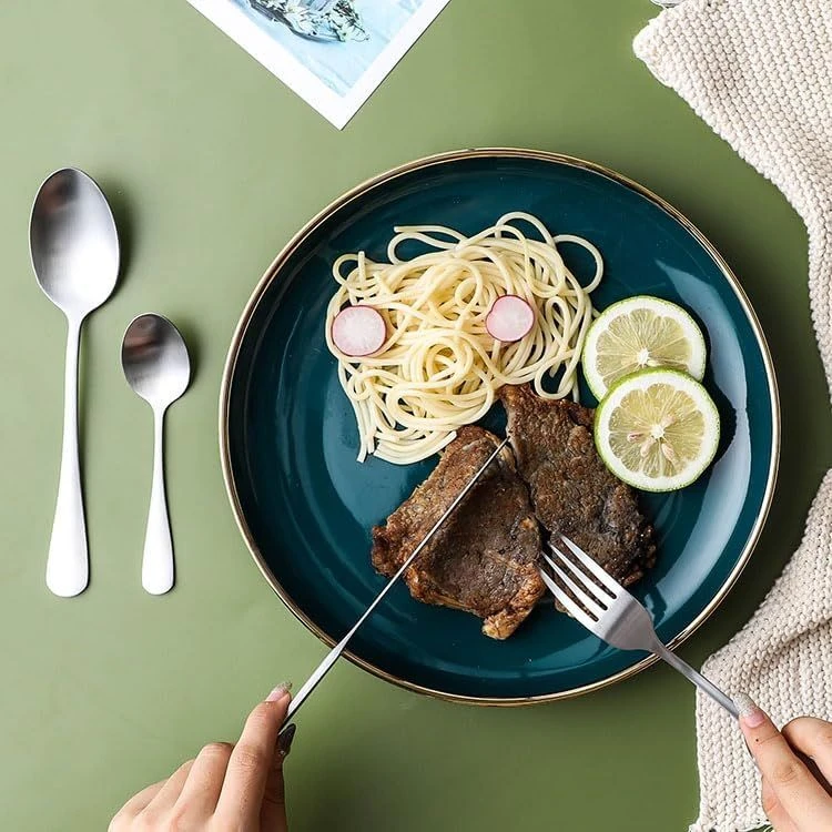 Simple and modern design,made of high quality stainless steel with mirror finish polishing,outstanding heat and rust resistance.It is also the first choice of upscale SANLI cutlery sets for daily reception of guests. This SANLI set of silverware is made of stainless steel of high quality. Each item has smooth edge, excellent heat resistance and rust prevention. These kitchen SANLI utensils set use are dishwasher safe, Rust free. Cutlery is so smooth and fresh like new after every wash. This type of SANLI cutlery is very luxurious and elegant and can be used as a perfect table decoration for family kitchens, restaurants, hotels and other places. This SANLI stainless steel silverware set classic design to fit any style kitchen tableware, Kitchen silverware sets Perfect for Daily Use / Gathering / Parties / Camping /Restaurant / Hotel or when you need extra silverware set. Made of high quality stainless steel material with no harmful substances, It's nickel-free, non-toxic and rust-resistant for everyday use, this stainless steel cutlery set is easy to care for and clean. It is not heavy but sturdy enough, it will not bend or get damaged for daily use. Durable enough to serve you for many years. Proper thickness and rounded edges provides a good grip. What's in the box 6 x Spoon 6 x Teaspoon 6 x Dinner knives 6 x Fork |