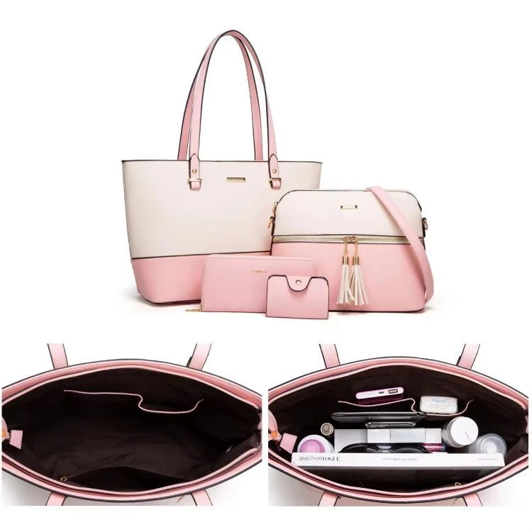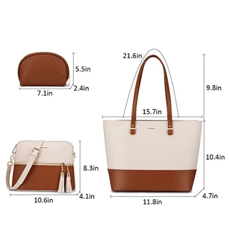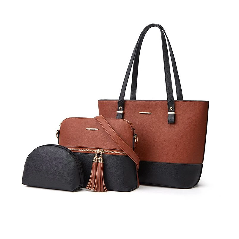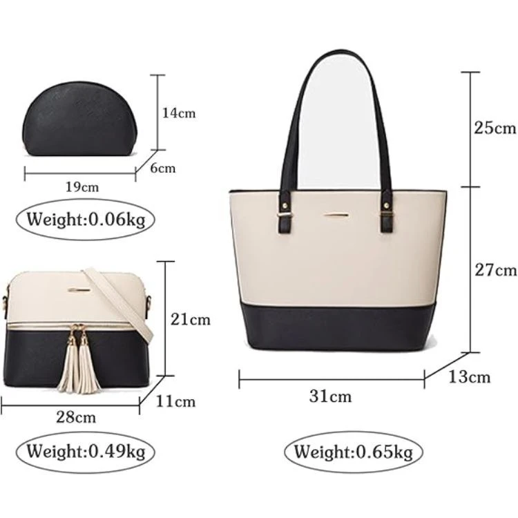 Indulge in the perfect blend of style and functionality with our stunning 3-piece synthetic leather handbag set. Designed for the modern woman, this set offers a cohesive and polished look, effortlessly adapting to your every need and occasion. Why Our 3-Piece Handbag Set Is a Must-Have Accessory: "Style That Speaks Volumes": Embrace a super cute design and perfect sizing that seamlessly transitions from day to night. This set adds a touch of charm to any outfit, making a stylish statement wherever you go. "Luxury You Can Feel, Durability You Can Trust": Crafted from premium synthetic leather, this set boasts a luxurious feel and exceptional durability. The well-made stitching runs smoothly and evenly, while the material is highly anti-scratch and tear-resistant. "Organized Elegance, Effortless Access": The tote bag features a smooth, easy-to-open top zipper, while the medium crossbody bag includes a functional front zipper pocket and adjustable shoulder strap. Inside each bag, you'll find thoughtfully designed compartments to keep your essentials organized. "Adapt to Your Day, Elevate Your Look": This versatile set allows you to seamlessly switch between the spacious tote, the chic crossbody, and the convenient wallet clutch. Whether you're running errands, traveling, or attending a party, you'll have the perfect bag for every moment. "Your Perfect Companion, Wherever Life Takes You": From shopping sprees and travel adventures to casual outings and special events, this handbag set is your reliable and stylish companion, ensuring you're always prepared and looking your best. Benefits You'll Love: Coordinated 3-piece set for a polished and versatile look. Premium synthetic leather for lasting durability and a luxurious feel. Multiple compartments and smooth zippers for organized elegance. Adjustable straps and versatile designs for seamless transitions. Perfect for various occasions, from casual outings to special events. Specifications (Simplified): Shoulder Bag Size: 31 x 27 x 13cm (W x H x D), Strap Height: 25cm Crossbody Bag Size: 28 x 21 x 11cm (W x H x D) Wallet Clutch Size: 19 x 14 x 6cm (W x H x D) What's in the box 1 x Piece Tote Bag 1 x Piece Crossbody Bag 1 x Piece Messenger Bag |