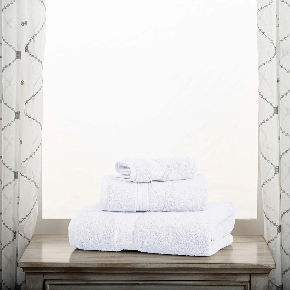 These towels are crafted from Egyptian Cotton pile fibers that are naturally strong, absorbent, and soft; heavyweight and plush; Set includes: 1 Hand (30"L x 16"W), 1 Bath (55"L x 30"W) and 1 Face Towel/Washcloth (13"L x 13"W). State-of-the-art design is fashionable, elegant and classy; rope border for added texture and style; this beautiful bundle is perfect for any master bath, powder room, or guest bathroom; loop for easy hanging and drying. For the most luxurious results, we recommend to wash with like colors, tumble dry low, and remove promptly from the dryer. Please follow care label instructions for best results. Made with a heavy duty construction, our bath towels are designed to withstand frequent use and washing, ensuring they can handle the demands of a busy environment. Our bath towels come in a generous size, providing ample coverage for drying off after a shower or bath. These towels are lightweight, not too thick for economical use. Our bath towels are machine washable and dryable, making them easy to clean and maintain, even with daily use. What's in the box 1 x Bath towel 1 x Hand towel 1 x Face cloth |