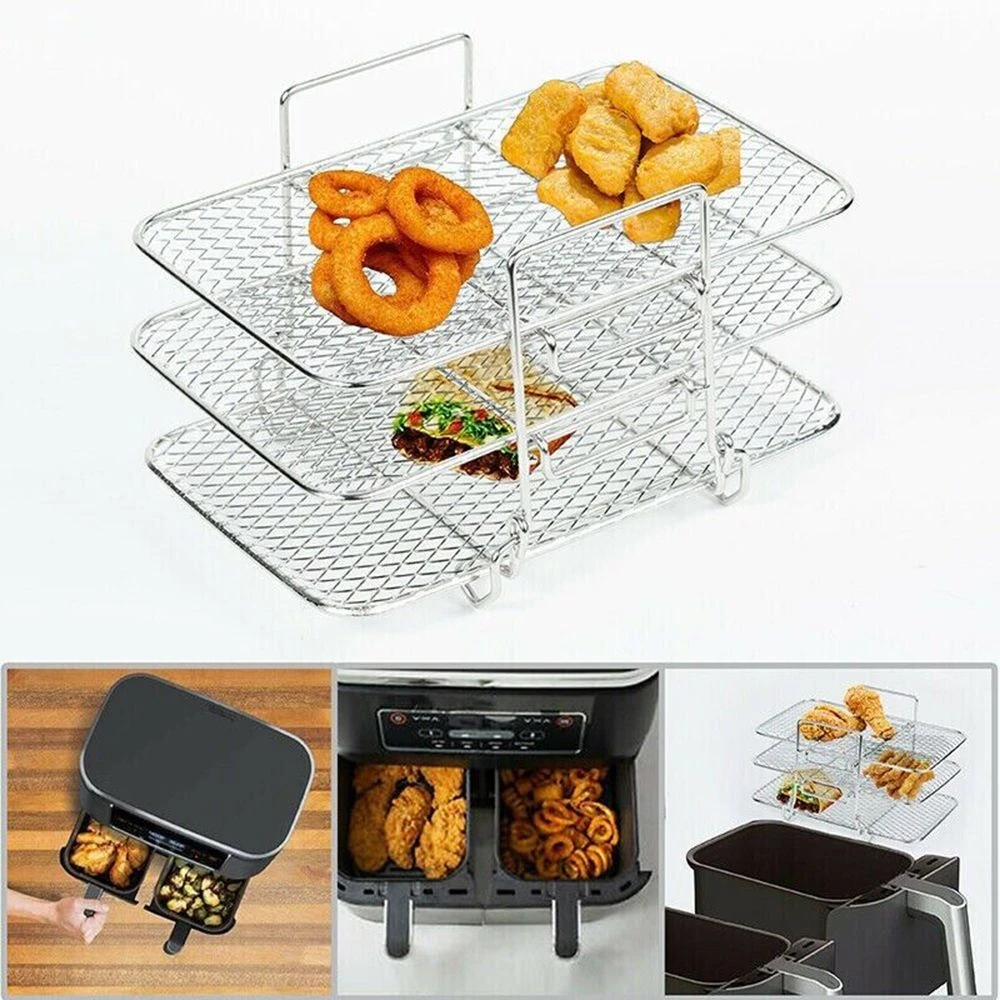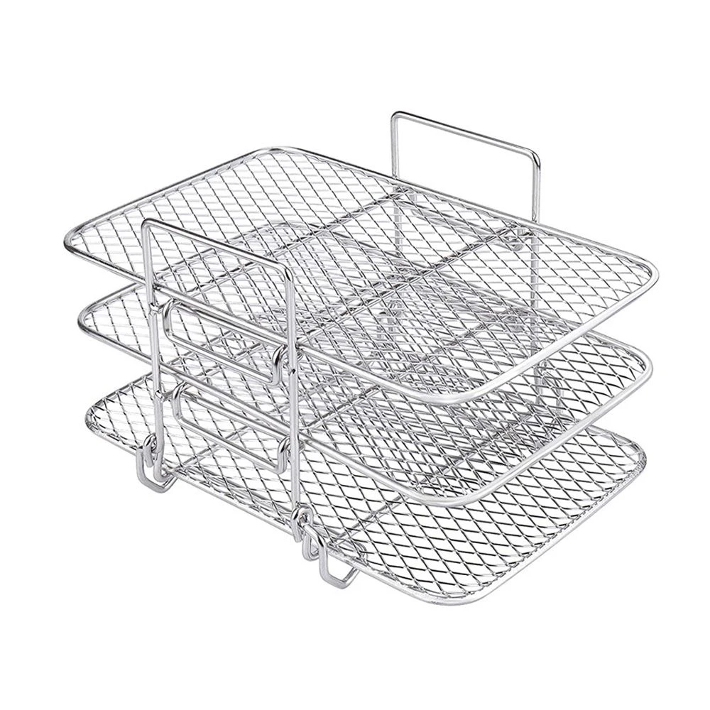 Features: A must-have tool for your air fryer, bringing much convenience to you dehydrator stand. This three-layer grill rack is removable design, and is dishwasher safe. Can also be washed by hand. With our air fryer grill rack, you can cook a wide variety of food, convenient to use dehydration rack. Three-layer grill, which can be stacked for use, is convenient for storage and storage, and does not take up too much space. Can be used at home for parties or family gatherings, even for a picnic, makes different delicious food for your friends or family. To increase the cooking space of the air fryer, it can provide ample space for frying food, cooking meat and baking snacks air fryer basket. Specifications: Color: Silver Material: Stainless Steel Product Size: about 19x13x11.5cm Note: Size may be a little deviation due to manual measurement. Different displays show the same picture may be slightly differences. What's in the box 1 x Air Fryer Rack |