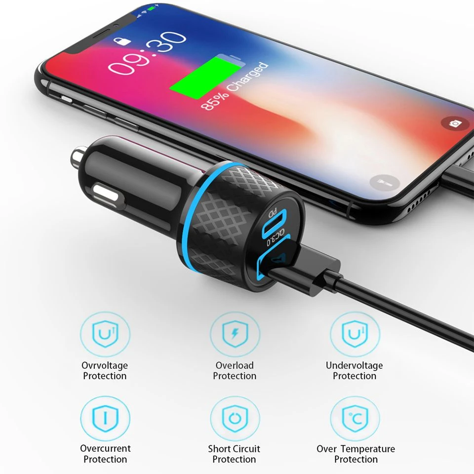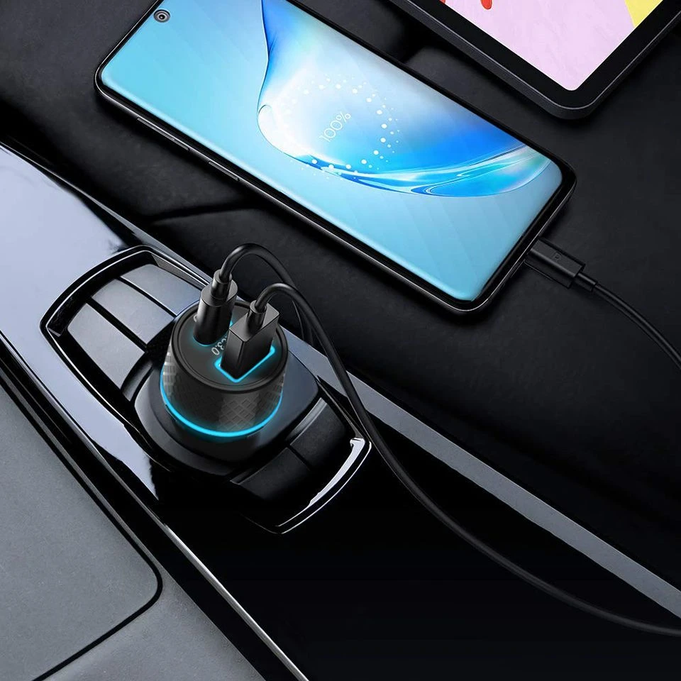Specifications: - Input: DC 12-24V - USB Output (USB-A): 5V 4A /9V 2A/12V 1.5A - PD Output (USB-C): 5V 3A/9V 2.22A - Output wattage: 36W - Size: 60.5mm Height x 30.5mm Diameter - Weight: 49g Main features: - Intelligent voltage real-time monitoring and protection. - Dual-port USB-A and USB-C allow for simultaneous fast charge of two devices. - LED digital display indicator to know your charging and car status at a glance. - Smart charging chip provides efficient and safe charging: -Short circuit protection. -Voltage overload protection. -Overheating protection. -Current overload protection. -Overload protection. - Supports PPS / QC3.0 / QC2.0 / AFC / SCP & FCP quick charging protocols for the latest devices. What's in the box 1 x Dual USB Car Fast Charger |