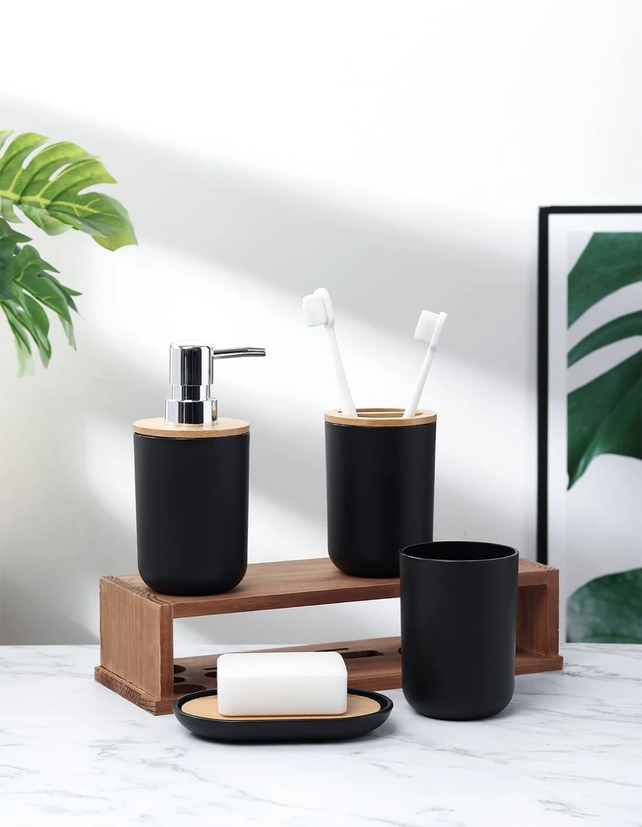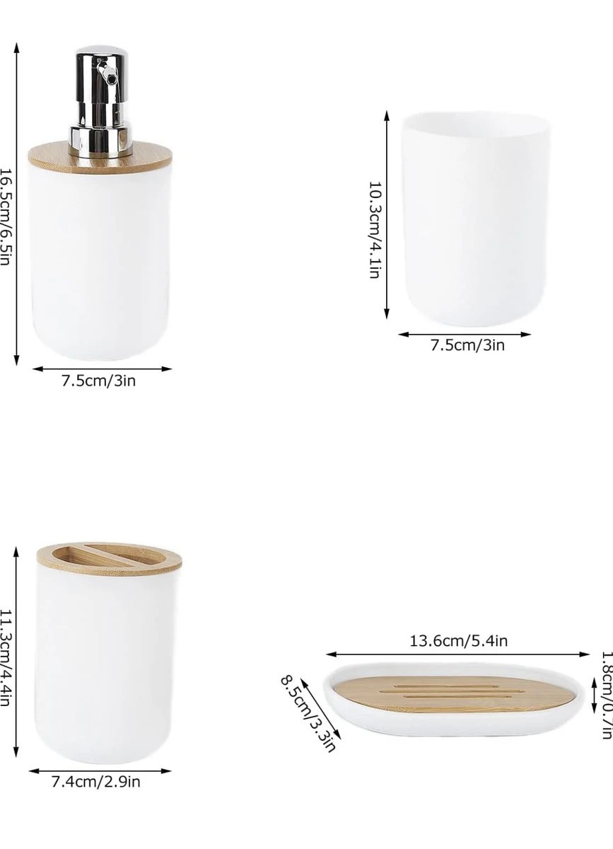 Features: - Soap box: The leaky design keeps your soap dry, not easy to be melted by water. Beautiful and practical, it is suitable to contain various perfumed and laundry soaps. - Lotion Dispenser: Perfect for shampoo, conditioner, lotion, body wash, or face wash, easy to use. ABS plastic plated silver indenter. It can be pressed by one hand and rebound automatically to press the pump. - Toothbrush Holder: There are holes in the cover of the toothbrush holder, which can store toothbrushes, razors, combs separately. - Tooth brush cups for daily use. Specifications: - Color: Gray, Black,White What's in the box 1 x Soap Holder 1 x Cup 1 x Brush Holder 1 x Liquid Dispenser |