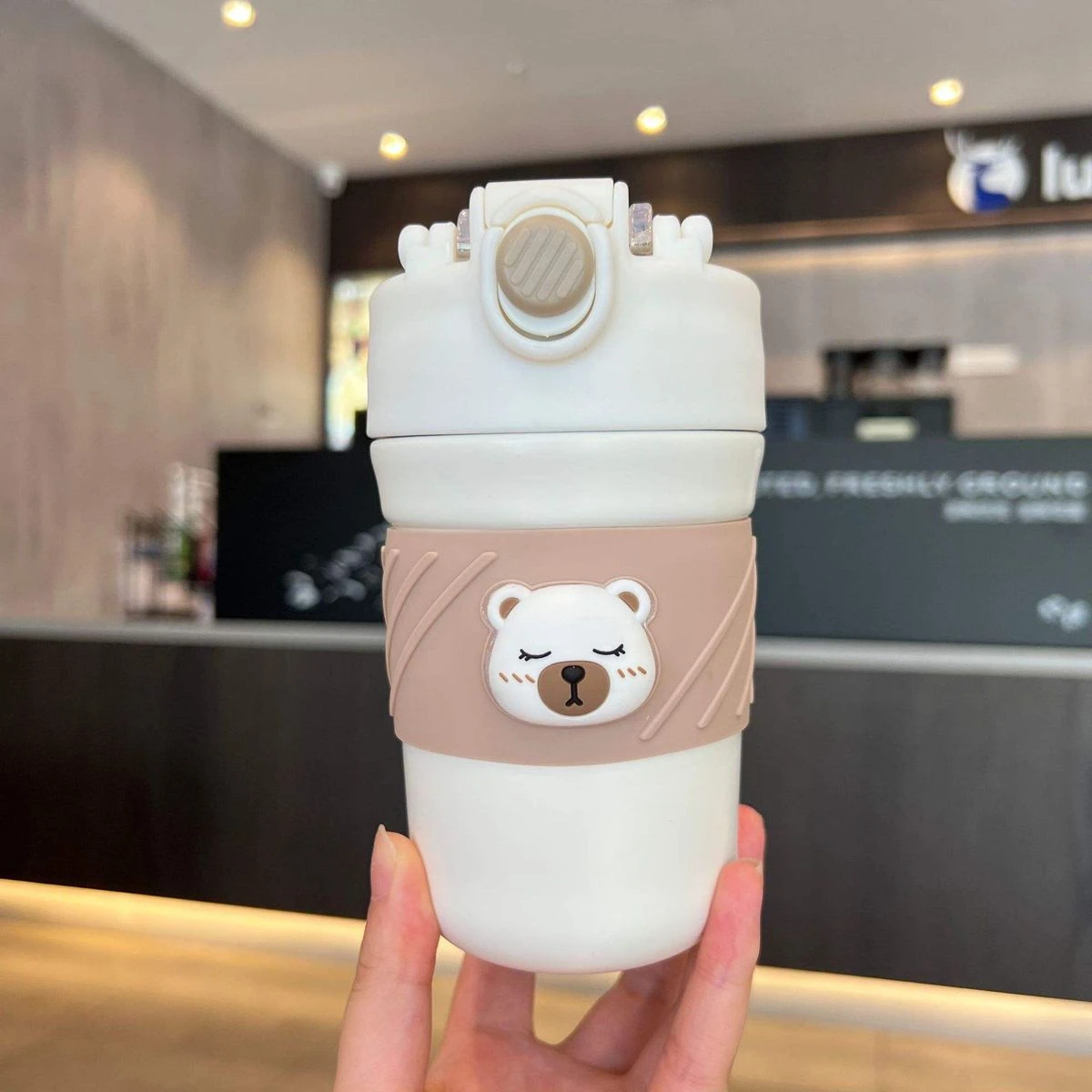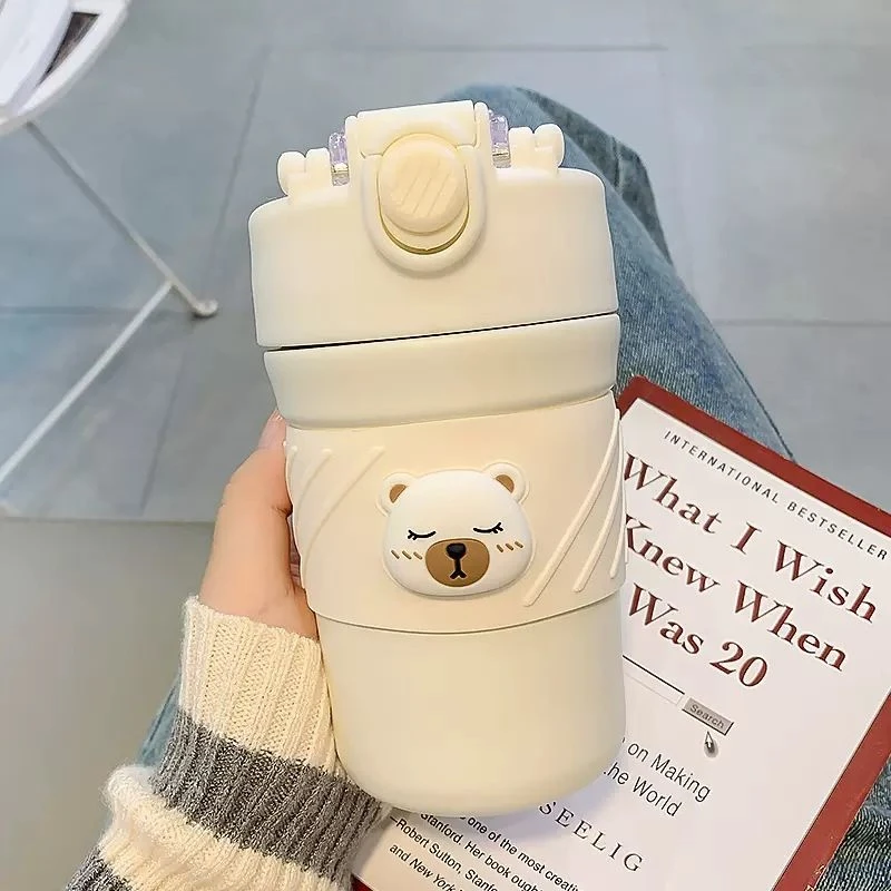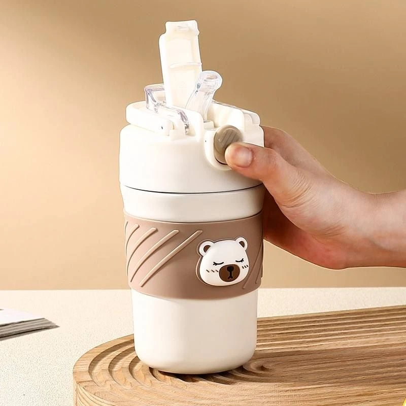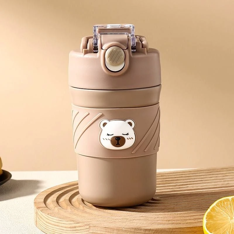 A perfect mug/tumbler for the ardent Brew Lovers. A Stainless-steel superior quality and cool vacuum tight lid mug from the collection of LSB's very own mascot, Kelly-jo,(the cuddly polar bear). Sipping your aromatic tea or coffee from your favorite beans has never been more fun, fresh, classy and sturdy! The super tight seal with sealing ring ensures that there is no leak whatsoever making it extremely convenient to carry in a bag or just carry it around while doing your daily chores. Comes with a folding handle which makes it convenient for the bottle to be carried on the go. This bottle comes with a thick Soft silicone straw sipper on one side of the lid which makes it very convenient to sip any cold beverage. And on the other side it has a lip measured lid which makes the beverage only pass when the cup is tipped towards the mouth. Both sections have heavy duty lids to keep the beverage safe and leak free. Extremely light weight and a perfect travel partner for you, this piece can be easily packed or carried. Dual sipping options come with its lid. A push button to sip all things hot and a sipper covered with a flip cap for all brews cold makes it just the most convenient and hassle free of all mugs. What's in the box 1 x Vacuum insulated tumbler |