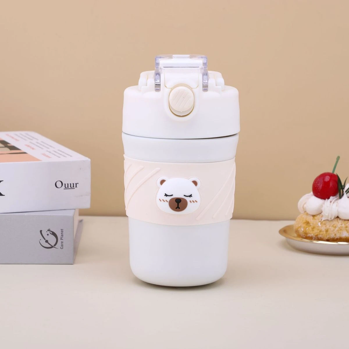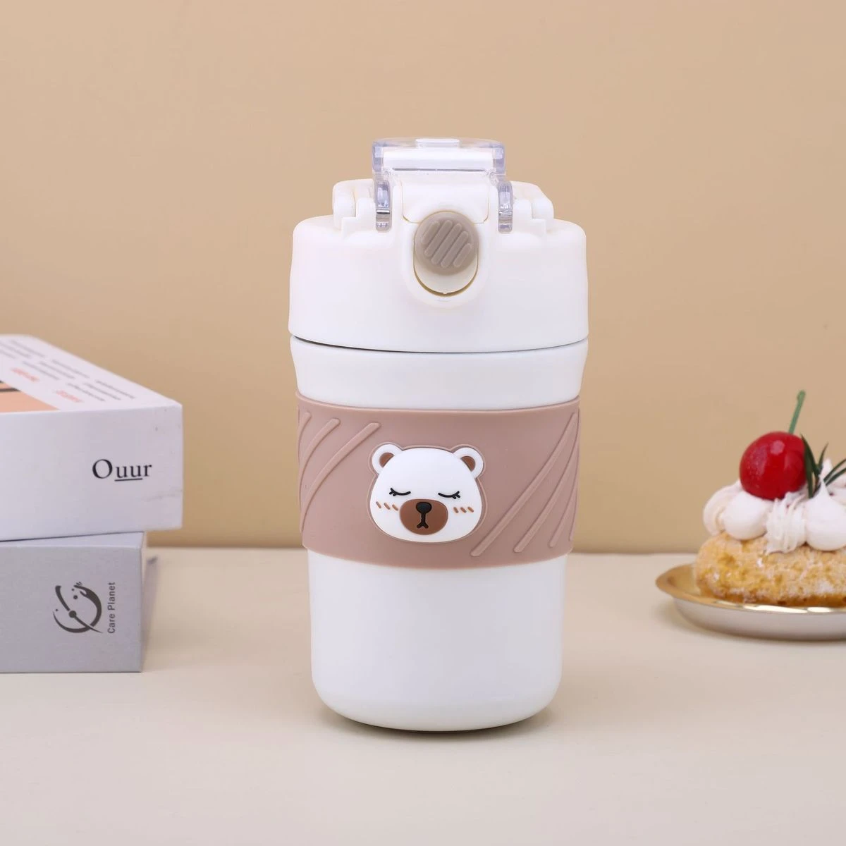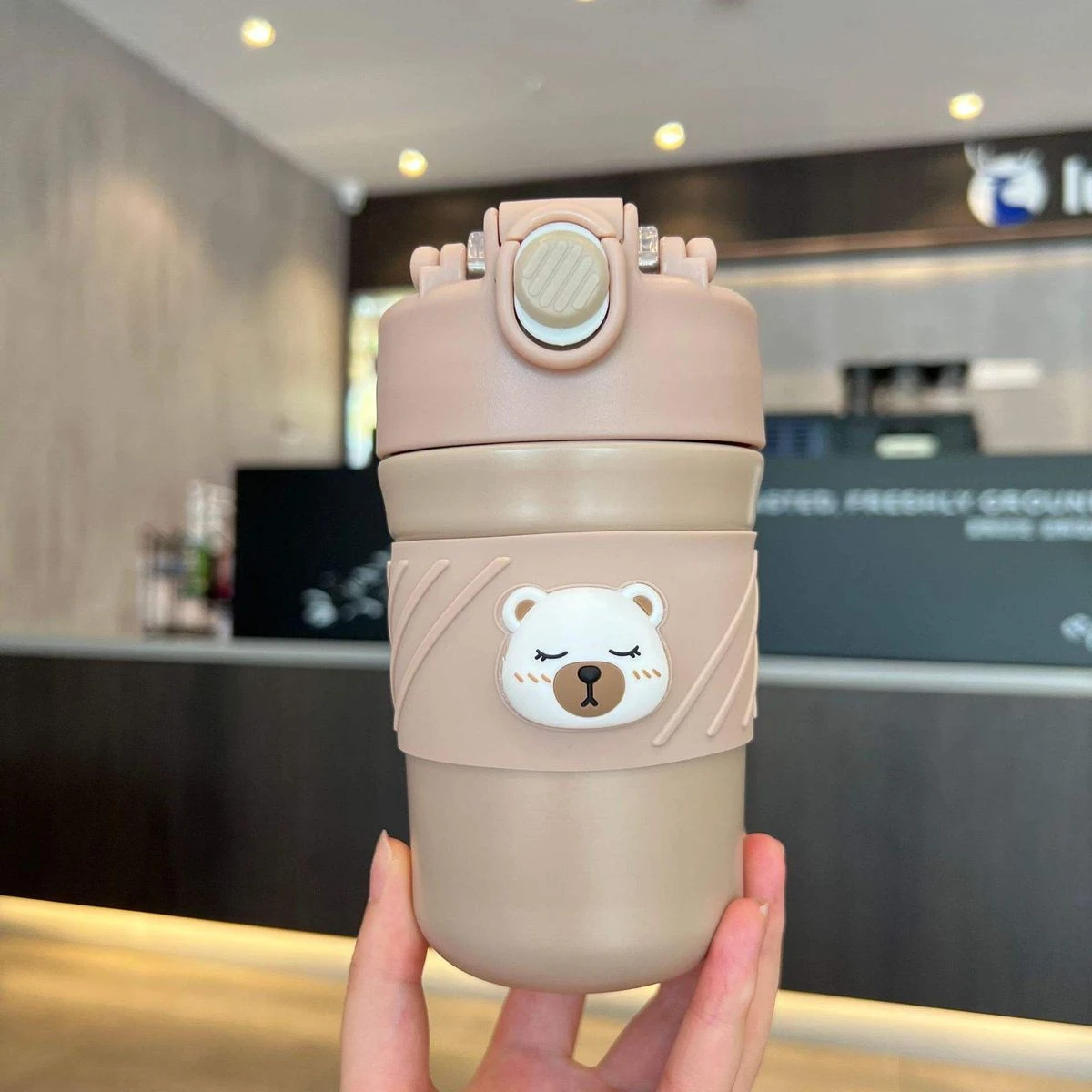 A perfect mug/tumbler for the ardent Brew Lovers. A Stainless-steel superior quality and cool vacuum tight lid mug from the collection of LSB's very own mascot, Kelly-jo,(the cuddly polar bear). Sipping your aromatic tea or coffee from your favorite beans has never been more fun, fresh, classy and sturdy! The super tight seal with sealing ring ensures that there is no leak whatsoever making it extremely convenient to carry in a bag or just carry it around while doing your daily chores. Comes with a folding handle which makes it convenient for the bottle to be carried on the go. This bottle comes with a thick Soft silicone straw sipper on one side of the lid which makes it very convenient to sip any cold beverage. And on the other side it has a lip measured lid which makes the beverage only pass when the cup is tipped towards the mouth. Both sections have heavy duty lids to keep the beverage safe and leak free. Extremely light weight and a perfect travel partner for you, this piece can be easily packed or carried. Dual sipping options come with its lid. A push button to sip all things hot and a sipper covered with a flip cap for all brews cold makes it just the most convenient and hassle free of all mugs. What's in the box 1 x Vacuum insulated tumbler |