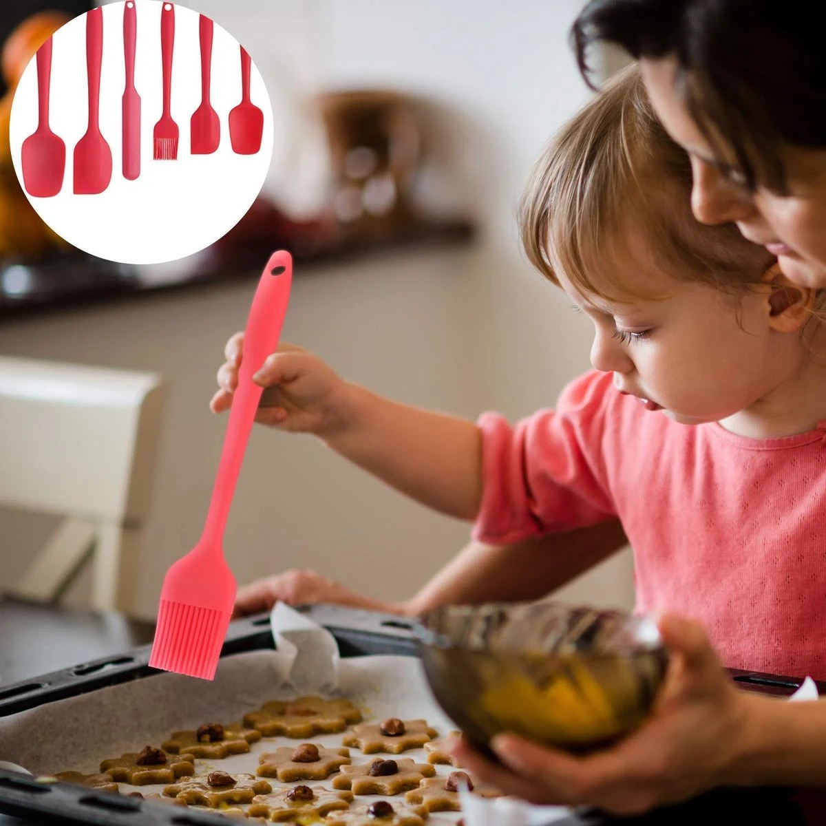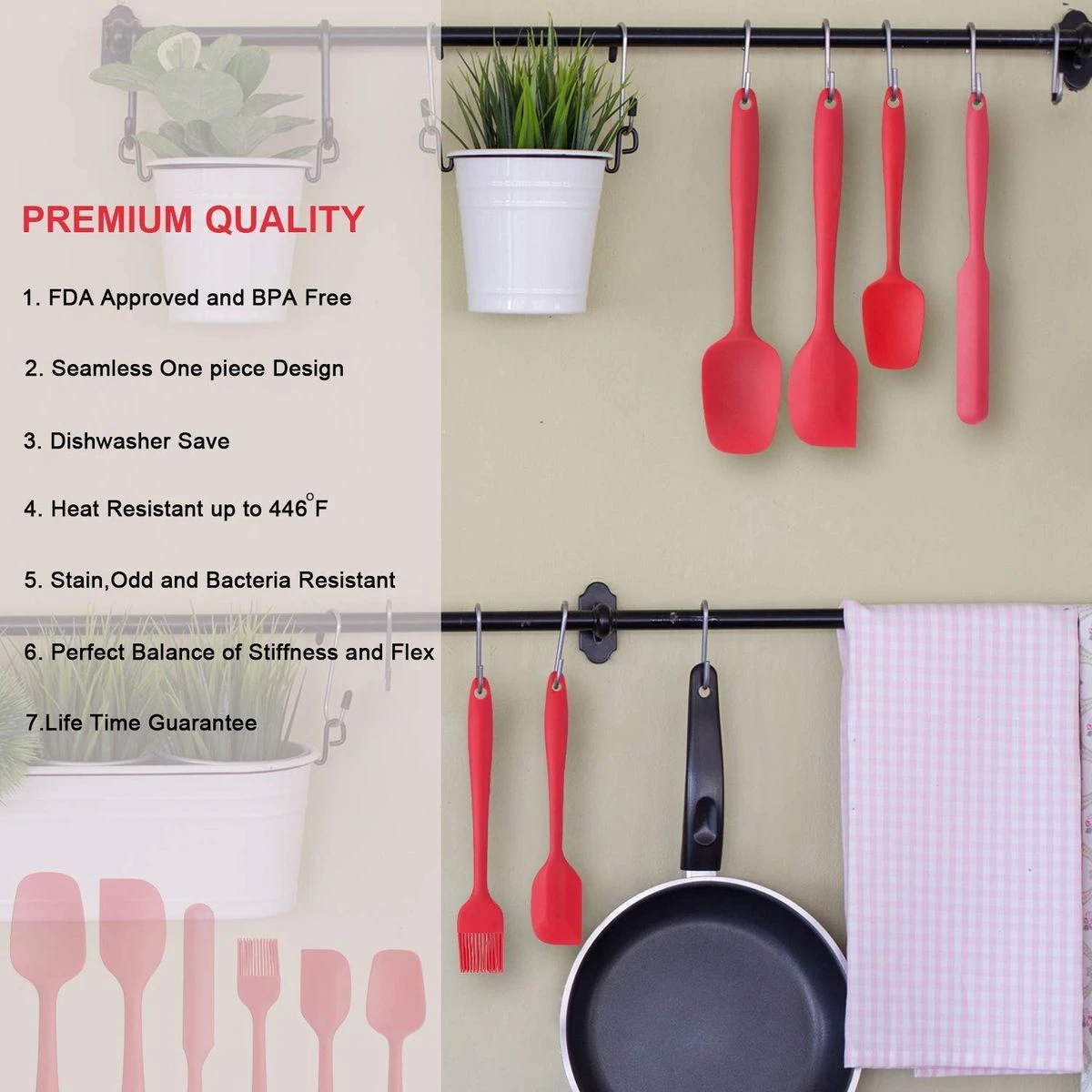 All of our silicone spatulas are crafted from FOOD GRADE SILICONE, which could be used for any food, BPA FREE and FDA APPROVED, will not be polluted or eroded, make your cooking always safe and health. Seamless one-piece design, stainless steel is added to every spatula for extra strength. With high strength of softness, corrosion resistance and high temperature resistance, these small all-around silicone spatulas will not rust or burn your hands during use. The perfectly angled head and ergonomically designed handles will prove very reliable with the heaviest batters, or whether you use them as a scraper spatula, icing spatula, baking or mixing spoon. Completely free of BPA and latex.These heat resistant kitchen cooking tools can be used up to 446 (230 ,The highest temperature of the stir fry is generally never exceed 200 ) .Safe for Coated & Non-stick Cookware and perfect for use with hot foods and around the cook top. Silicone Spatula can be cleaned in the same way as regular cooking utensils, either by hand or in the dishwasher. Do not use abrasive cleaning pads, as they can scratch the surface of silicone and should be avoided. What's in the box 1 x 6 Silicone spatula set |