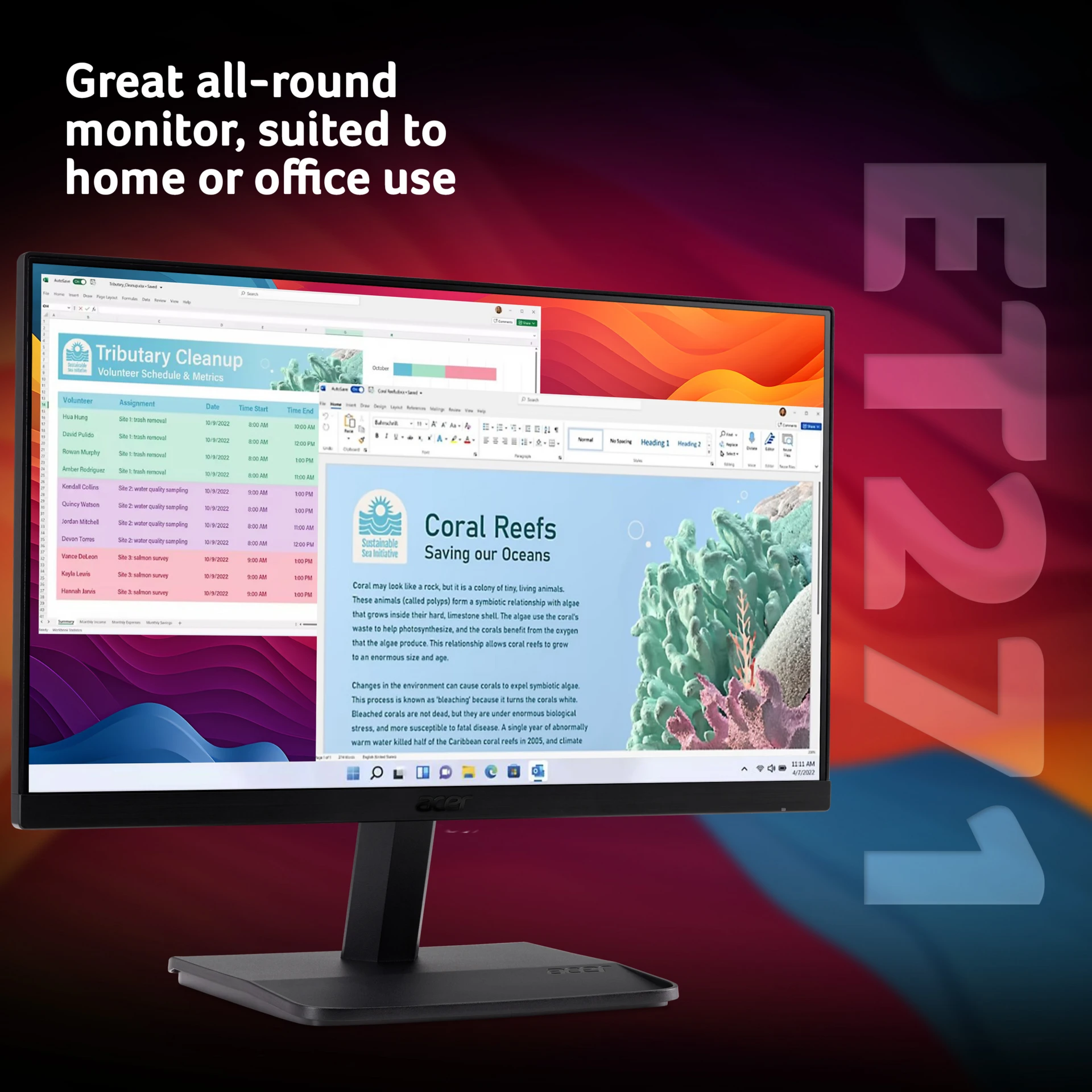 27" display 1920 x 1080 16:9 aspect ratio 100Hz 1080p 1000:1 contrast ratio 3 Year Exchange Warranty Acer ET271 27" FHD 100Hz MonitorExperience stunning visuals with the Acer ET271, featuring a vibrant 27" Full HD display that brings your content to life in crisp 1920 x 1080 resolution. Its sleek black design fits perfectly into any space, while the smooth 100Hz refresh rate ensures fluid motion for gaming and movies. Enjoy vivid colors and sharp contrasts with a 1000:1 contrast ratio, making every detail pop. This monitor combines performance and peace of mind for your everyday computing needs. |