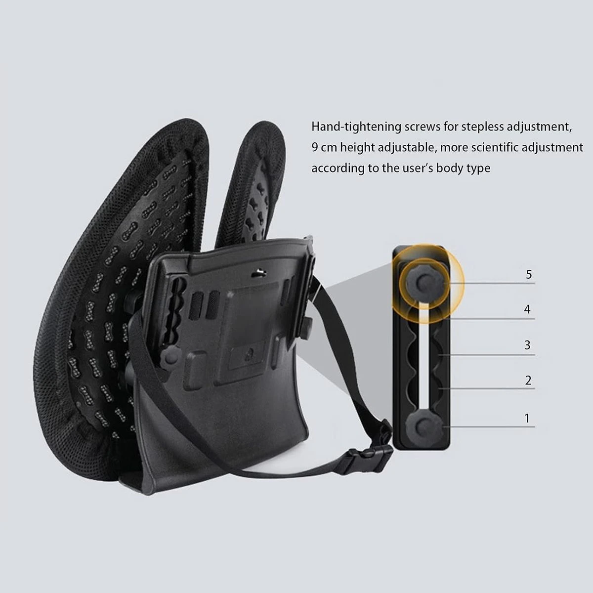 Experience unparalleled comfort and support with the Adjustable & Breathable Lumbar Support, designed to enhance your posture and alleviate back strain during long hours of sitting. Whether you're at the office, in the car, or relaxing at home, this lumbar support is the perfect addition to your chair. Key Features: - Breathable Design: The lumbar support features a breathable mesh cover that promotes airflow, keeping you cool and comfortable throughout the day. The cover is not only designed for comfort but is also easily removable and machine washable, ensuring your lumbar support stays fresh and clean. - 5 Height Adjustments: Tailor your lumbar support to your exact needs with five adjustable height settings. This customizable support allows you to find the perfect position to maintain the natural curve of your spine, reducing back pain and enhancing overall comfort. - Versatile Use: Ideal for a variety of seating options, including office chairs, car seats, and home chairs, this lumbar support provides reliable back support wherever you need it most. Its compact size (40x40x14cm) makes it easy to transport and fit onto different types of seating. - Easy Maintenance: The removable fabric cover can be quickly detached and thrown into the washing machine whenever needed, making it simple to keep your lumbar support looking and feeling like new. Enhance your seating experience with the Adjustable & Breathable Lumbar Support, designed to provide customized comfort and lasting support, no matter where your day takes you. What's in the box 1 x Adjustable & Breathable Lumbar Support - 40x40x14cm |