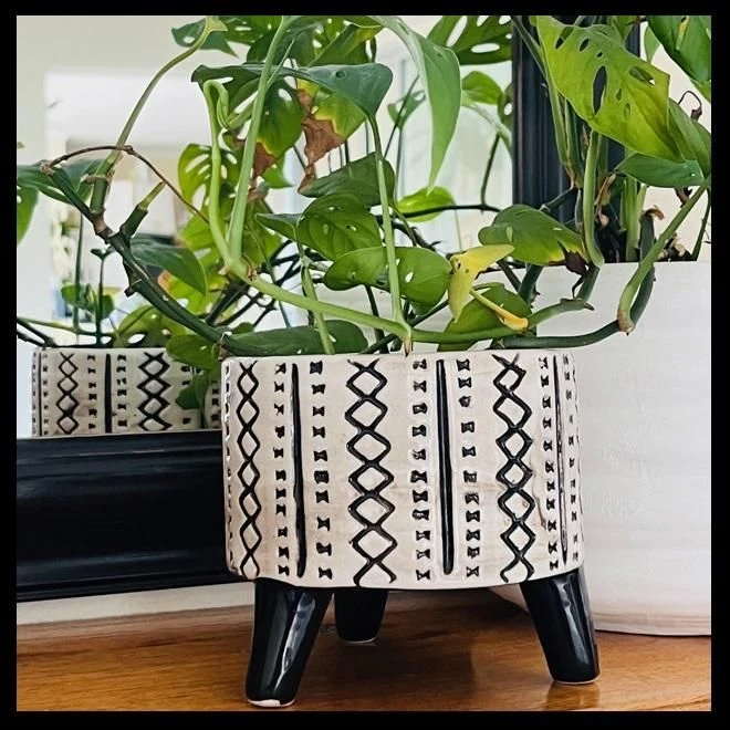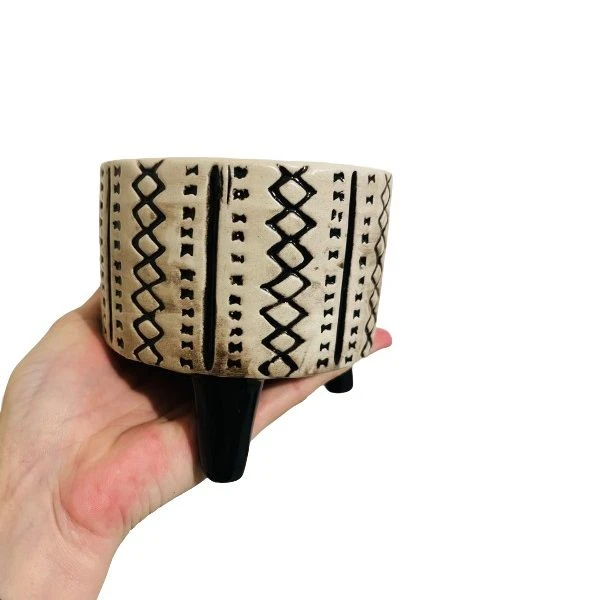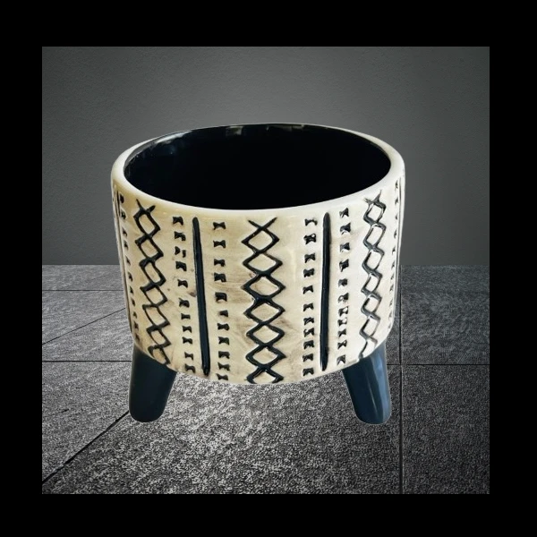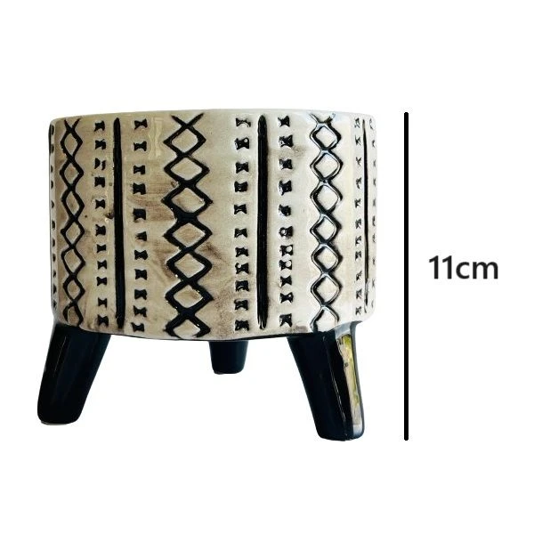 This African Tripod Ceramic Embossed Plant Pot is the perfect addition to any plant lover's collection. With its unique design and sturdy construction, it will be sure to make a statement in any home or office. No drainage hole Indoor and outdoor use. What's in the box 1 x African Tripod Ceramic Embossed Plant Pot of Selected Pack Size |