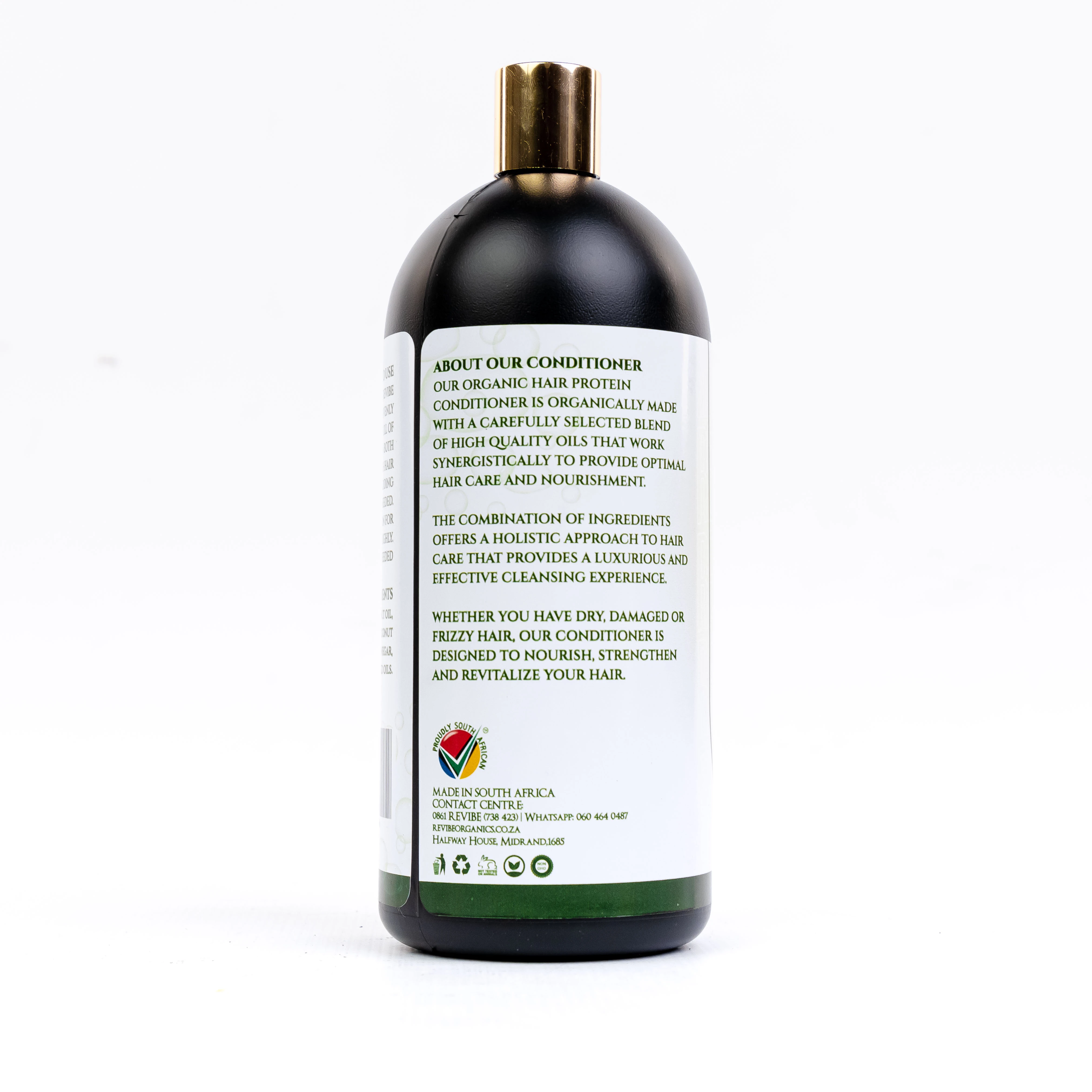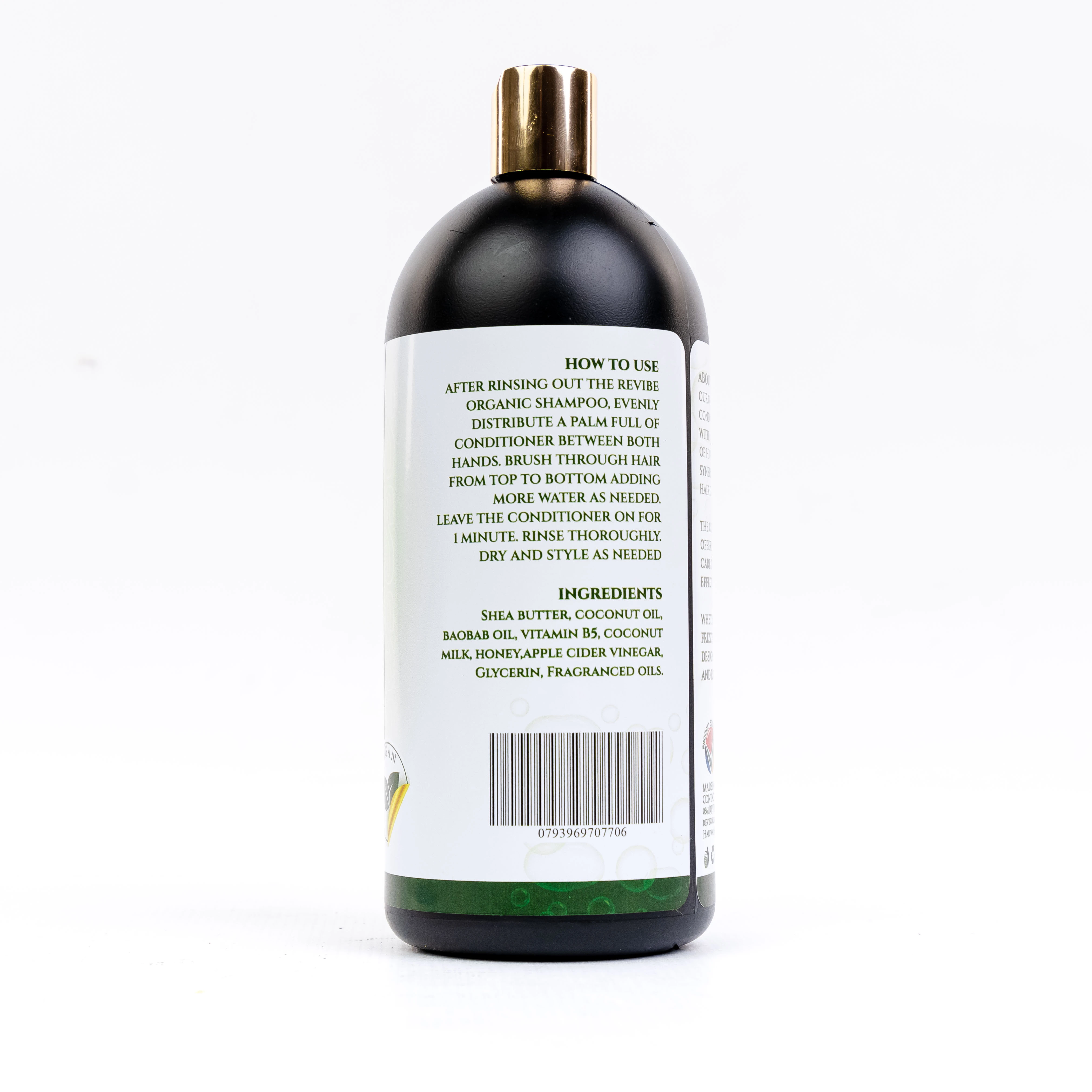 Aloe Vera & Nettle Leaf Protein Conditioner Size: 1L Nourish. Detangle. Revive. Experience Revibe Organics Aloe Vera & Nettle Leaf Protein Conditioner in a convenient, everyday size. Formulated with the same botanical-rich blend as our salon-size version, this deeply moisturizing conditioner smooths and softens even the most delicate strands, making comb-throughs effortless. Infused with aloe vera, nettle leaf, shea butter, and vitamin B5, this formula restores moisture and strengthens hair without weighing it down. Ideal for low porosity hair and anyone seeking a clean, conscious hair care routine in a more compact format. How to Use Our Aloe Vera & Nettle Leaf Protein Conditioner