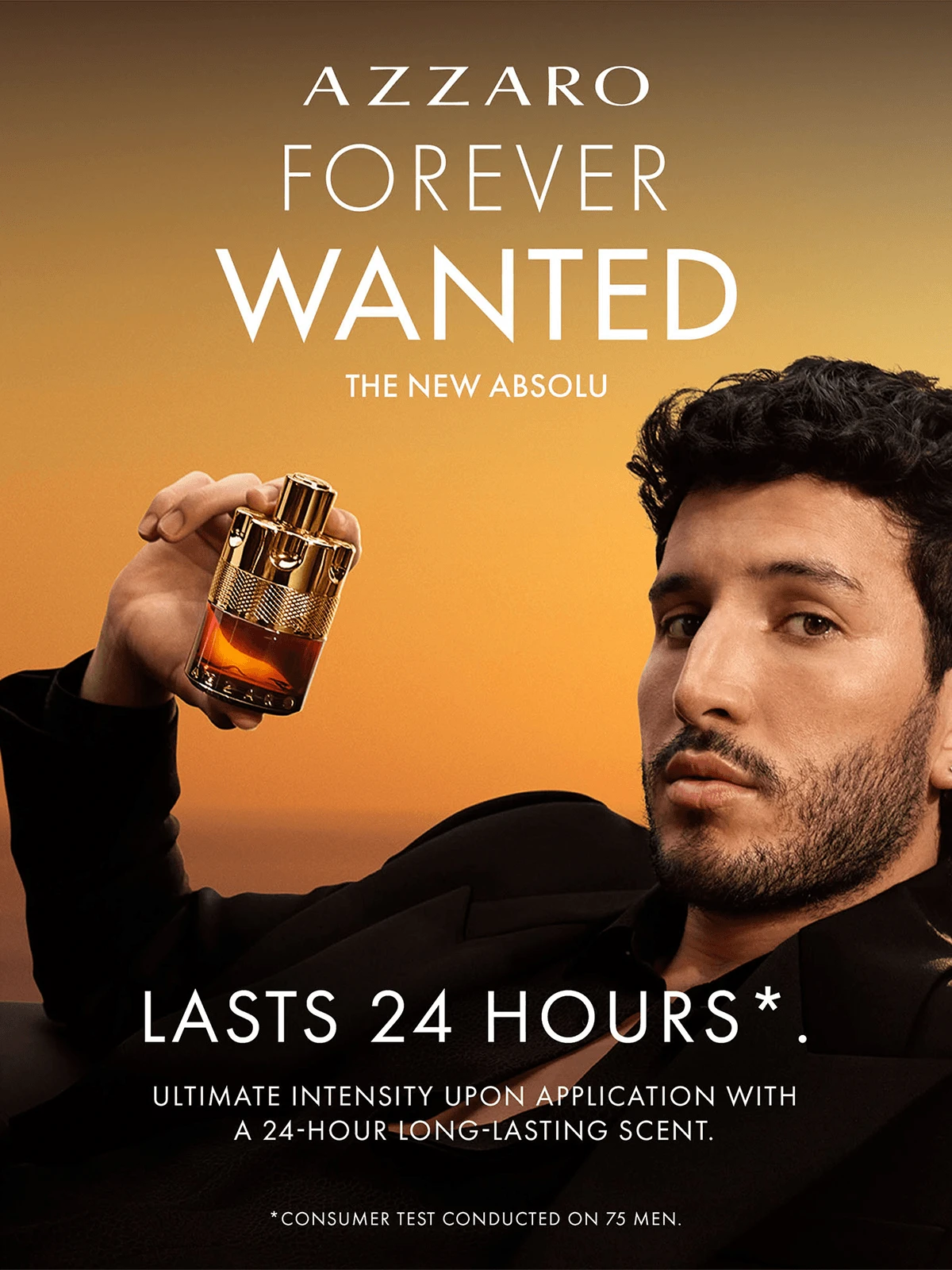 Azzaro introduces its new fragrance: Azzaro Forever Wanted Absolu. The smoky allure of incense fuses with the warm sensuality of vanilla and whiskey, creating an unforgettable and addictive 24-hour trail. Ingredients ALCOHOL • PARFUM / FRAGRANCE • AQUA / WATER / EAU • TETRAMETHYL ACETYLOCTAHYDRONAPHTHALENES • LINALYL ACETATE • VANILLIN • COUMARIN • LAVANDULA OIL/EXTRACT • ACETYL CEDRENE • LINALOOL • DIETHYLAMINO HYDROXYBENZOYL HEXYL BENZOATE • CARVONE • JUNIPERUS VIRGINIANA OIL • LIMONENE • PINENE • CITRUS LIMON PEEL OIL • ALPHA-ISOMETHYL IONONE • CAMPHOR • BETA-CARYOPHYLLENE • TERPINEOL • ANETHOLE • TERPINOLENE • ROSE KETONES • MENTHA VIRIDIS LEAF OIL • CITRAL • GERANYL ACETATE • GERANIOL • CITRUS AURANTIUM PEEL OIL • MENTHOL • ALPHA-TERPINENE • CI 14700 / RED 4 • CINNAMAL • SCLAREOL • CI 15510 / ORANGE 4 • FARNESOL • CI 61570 / GREEN 5 (F.I.L. N70075837/1). |
