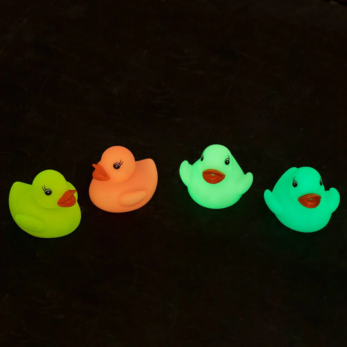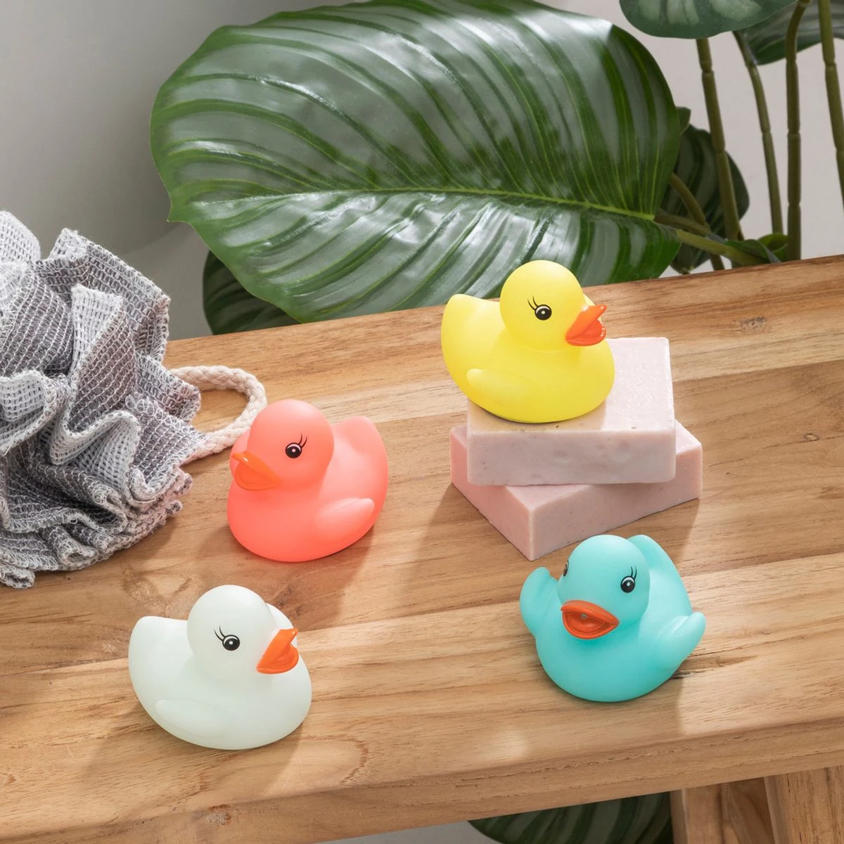 The more sunlight the Rubber Ducks absorbs, the brighter it will glow! Sure, there's nothing more classic than a rubber ducky, but now there's something a bit more interesting than your average yellow duck. These glow in the dark ducks will make bath time so much fun! Features: - Perfect size and texture for little hands to hold and squeeze - To clean, rinse with warm water, squeeze out water and wipe dry before storing What's in the box 9 x Rubber Ducks |