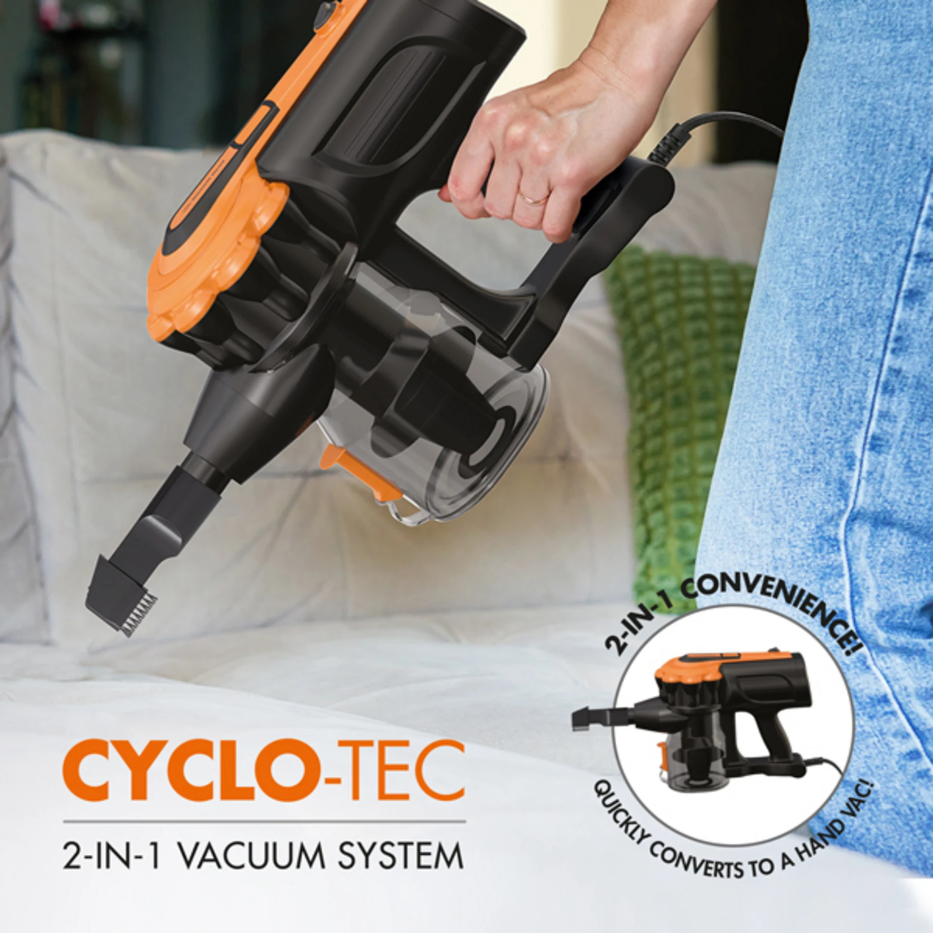 Super-efficient 600W motor Cyclonic filtration, with micro filter Thermal cut-off motor protection 6-Metre long power cord Easy-empty dirt tank Quality adjustable extension wand Wall-mount bracket for easy storage 1 Year + 1 Year Warranty Bennett Read Cyclo-TecThe Bennett Read Cyclo-Tec is a 2-in-1 home cleaning solution designed for ultimate convenience and versatility. This agile vacuum cleaner seamlessly converts from an upright cleaner to a powerful hand vac in seconds, allowing you to tackle a wide range of cleaning tasks with ease. In upright mode, it features a durable steel metal extension wand and a multi-surface floor nozzle, perfect for carpets and hard floors. Switch to hand vac mode for precision cleaning using the crevice nozzle and upholstery tool—ideal for furniture, corners, and tight spaces. It comes complete with a full set of attachments, including an adjustable metal wand, dusting brush, combination crevice tool, and wall-mount bracket for easy storage. The Cyclo-Tec offers smart, flexible cleaning performance for every corner of your home. |
