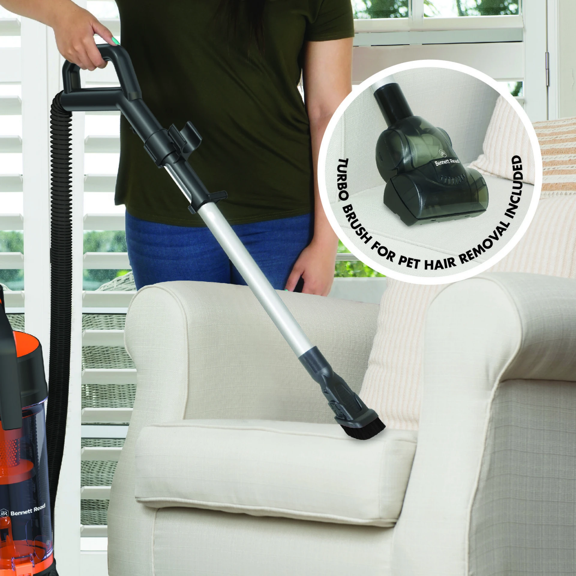 Full size pet turbo brush 1200W Motor Lightweight & compact Multi-surface cleaning Bagless convenience Thermal cut-off motor protection On-board storage Bennett Read PowerUp Pet VacuumThe Bennett Read PowerUp Pet Vacuum is a high-performance cleaning solution designed specifically for homes with pets. Equipped with a full-size handheld pet turbo brush, it effortlessly lifts pet hair from carpets, upholstery, and hard surfaces. Its advanced cyclonic dirt separation system enhances filtration, maximizes airflow, and increases dirt pickup efficiency. Enjoy the convenience of a large bagless lift-off canister with an easy-eject release button for quick, mess-free emptying. The vacuum features an adjustable height dial for seamless transition between long pile carpets, short pile carpets, and hard floors—ensuring versatile performance across your home. A durable, metal-reinforced ultra-stretch hose extends up to 3 meters, providing exceptional reach while contracting to just 90cm for easy storage. The PowerUp Pet Vacuum offers powerful, reliable cleaning for pet owners and families alike. |