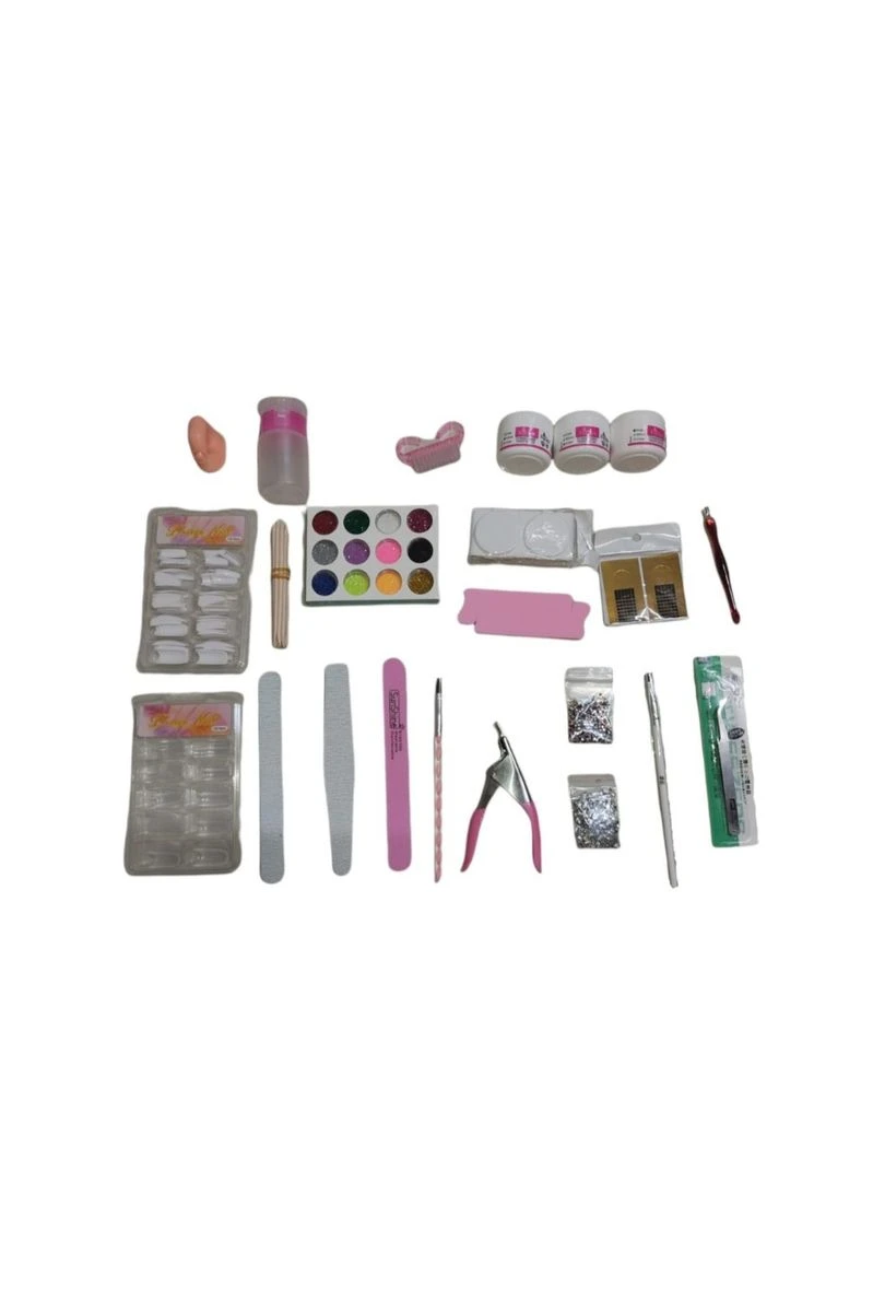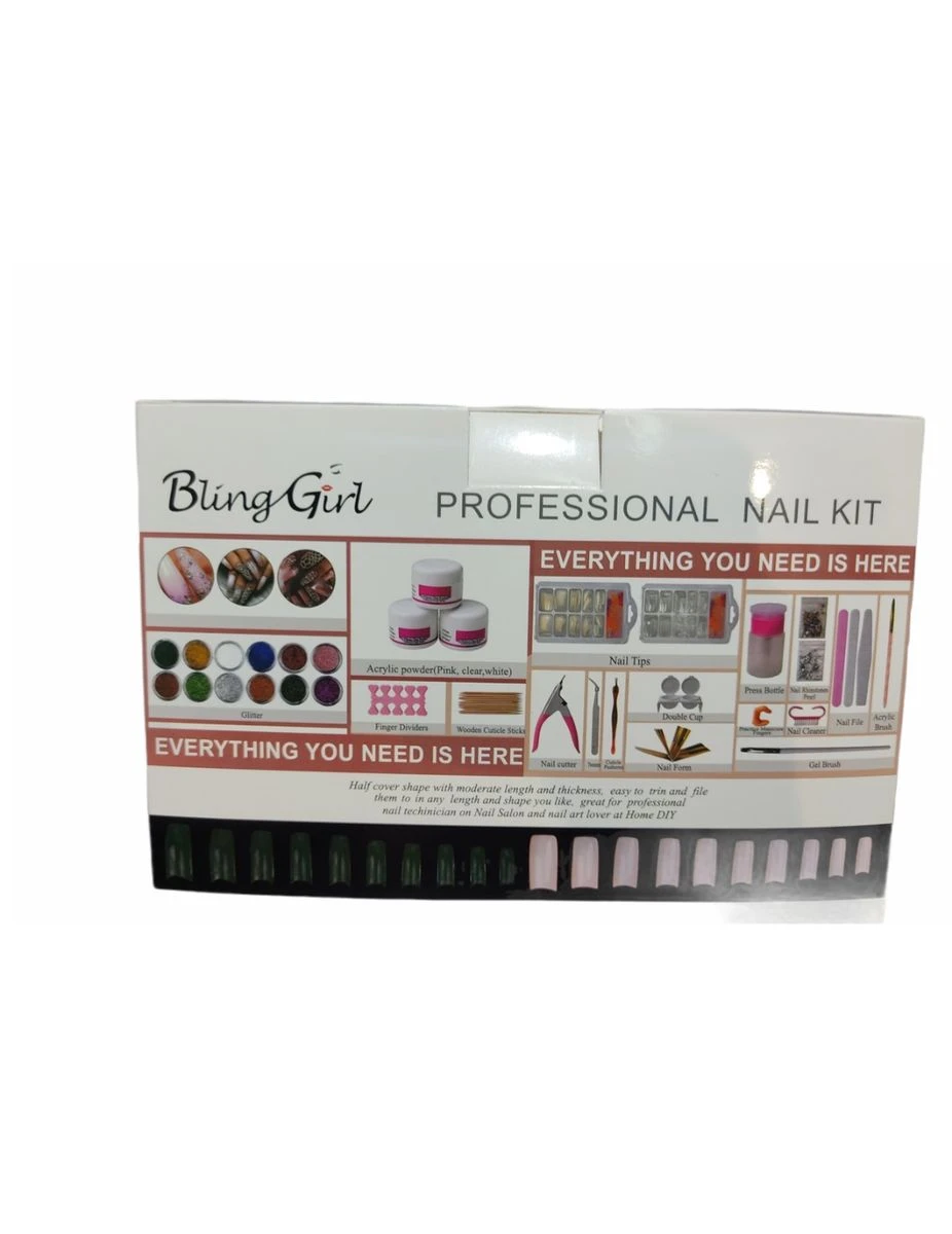 The Bling Girl 38-Piece Professional Acrylic Nail Starter Kit is the perfect compact set for beginners and nail enthusiasts looking to practice or create beautiful acrylic nails at home. This small but complete kit includes acrylic powders in pink, white, and clear, nail tips, forms, brushes, glitter, and essential nail art tools. It's ideal for at-home use, nail training, or travel. Please note: this is a small starter kit, not a professional salon-sized set. Features: