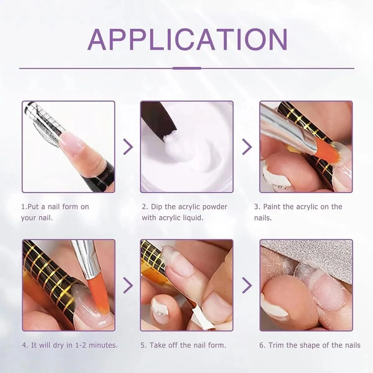 A liquid used in combination with acrylic powder to create acrylic nails. It is a crucial component of the acrylic nail system, as it acts as a binding agent that joins the acrylic powder together and creates a mouldable substance that can be sculpted into the shape of a nail. Self-leveling, a non-yellowing liquid monomer which provides outstanding flexibility, adhesion and absorption when mixed with acrylic powders. This grade of acrylic monomer includes UV inhibitors to prevent yellowing. Available in violet only. Features: