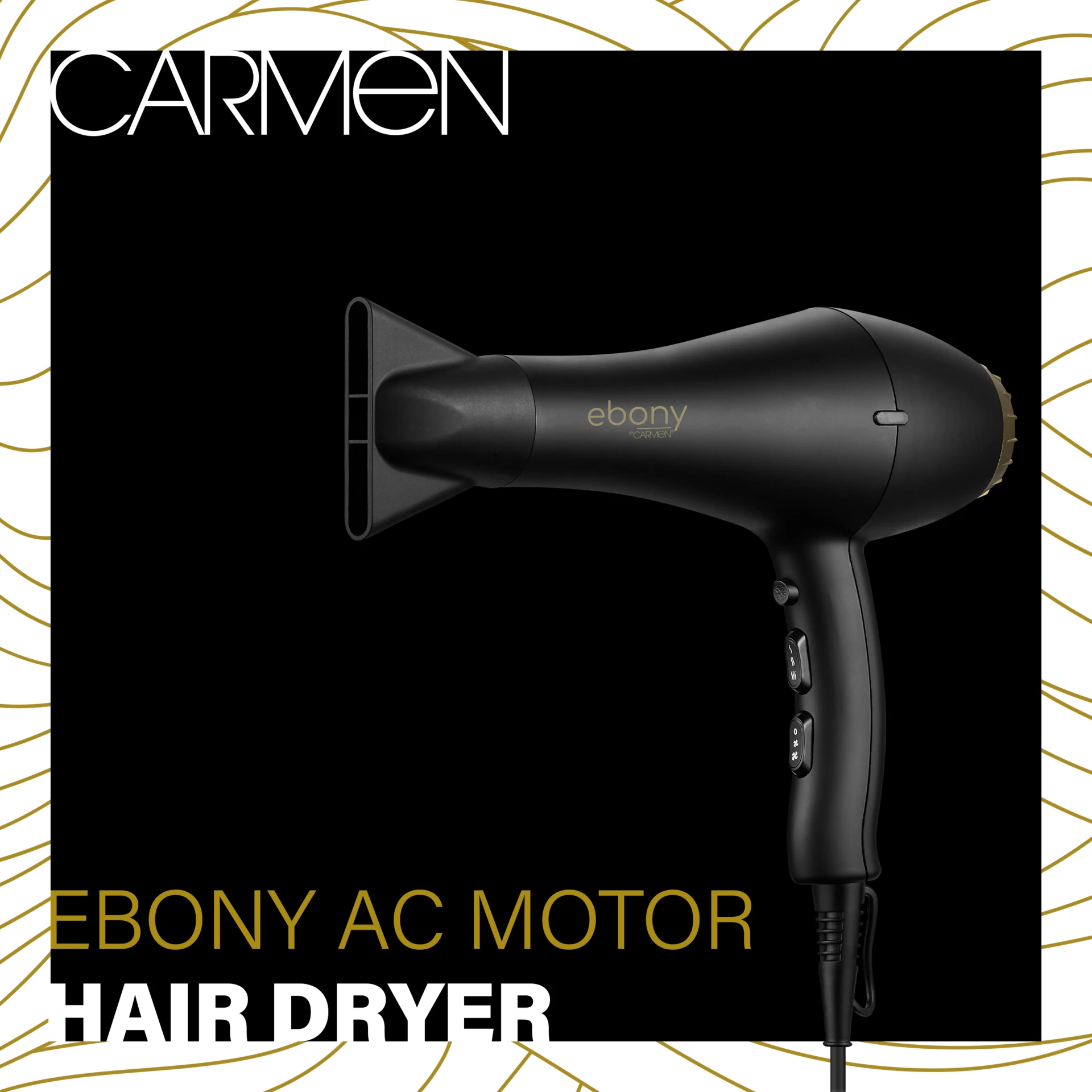Fast powerful airflow Includes styling tools Lightweight easy use Smooth sleek results Ideal for all hair types Carmen Ebony AC Motor Hair DryerExperience salon-quality styling at home with the Carmen Ebony AC Motor Hair Dryer. Its powerful 2000-watt airflow dries your hair quickly while delivering smooth, sleek results. Designed for all hair types, this lightweight dryer is easy to handle and features adjustable power output and electronic controls for personalized styling. The sleek black and chrome finish adds a touch of elegance, and the included removable filter keeps your dryer performing at its best. Elevate your hair routine with Carmen’s professional touch and included styling tools! |