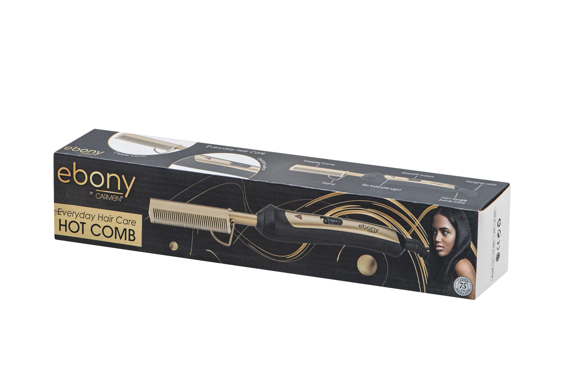 Ideal for curly, frizzy hair Simple ON/OFF switch Easy indicator light Hanging loop for storage Smooth, sleek results 220–240V Heat-straightening comb Stable heated element Carmen Ebony Hot CombDiscover sleek, smooth hair with the Carmen Ebony Hot Comb, designed especially for curly and frizzy hair. This professional salon tool features a stable heated element and a floating ceramic plate for gentle, effective heat straightening. Enjoy easy control with a simple ON/OFF switch and an indicator light that lets you know when it’s ready. The stylish black and gold metallic finish adds a touch of elegance, while the convenient hanging loop makes storage effortless. Perfect for creating polished, radiant looks every day. |