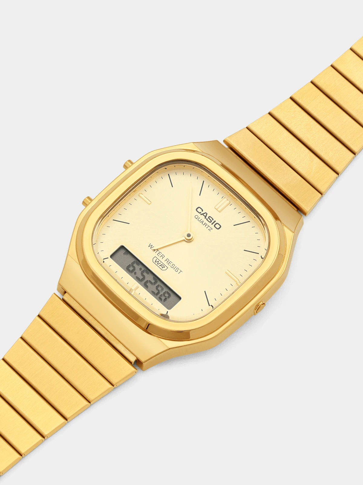This retro-modern Gold Plated Stainless Steel bracelet watch features a square case with rounded edges and gold toned anadigi dial. Guarantee/warrantee 1 Year Warranty Material composition Stainless Steel Fibre content STAINLESS STEEL Waterproof Water Resistant Dial colour Champagne Strap colour GOLD PLATED Material colour Gold Plated Watch case size 40.9mm × 35.8mm × 8.1 mm Dial shape Square |