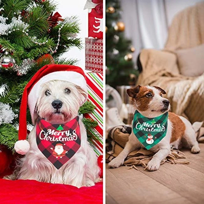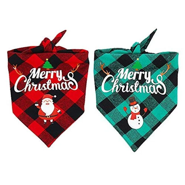 Christmas Dog Bandanas: Classic plaid design with Merry Christmas, Santa, Snowman pattern, fit for girls and boys. It's born for christmas, make your pet look more fashionable and attractive for Christmas holiday. Widely Application: Christmas dog scarf is ideal for christmas party, everyday wear, photoshoots, cosplay parties. The pet bandana not only for dressing up your pets, but also protecting your pets from drooling. What's in the box 2 x Christmas Pet Bandanas |