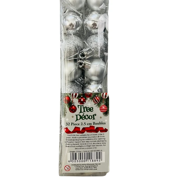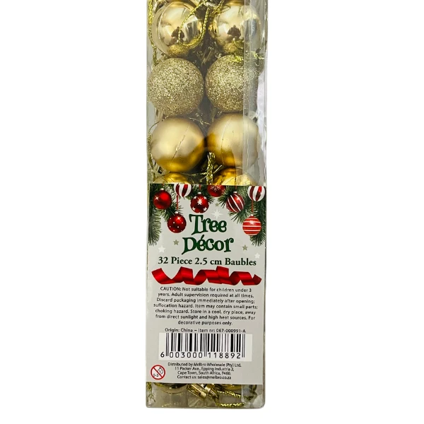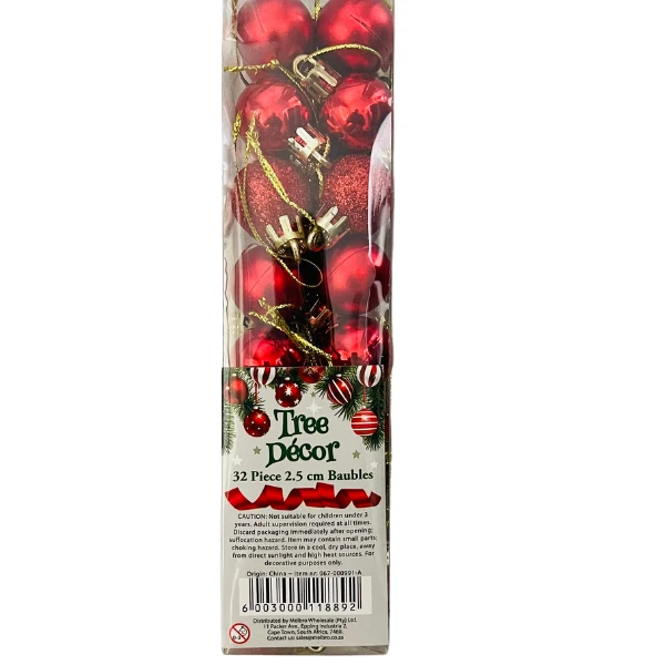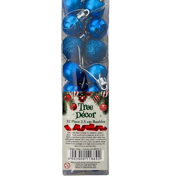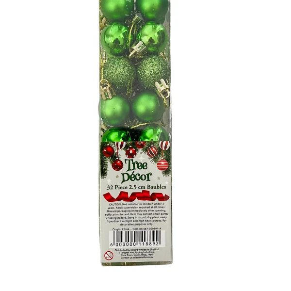 Christmas Tree Decor Balls Polished (25mm) in green, red, silver, blue and gold. 32 piece packs. The perfect addition to your Christmas tree decorating. What's in the box 1x Christmas Tree Decor Balls Polished (25mm) in the colour selected. |