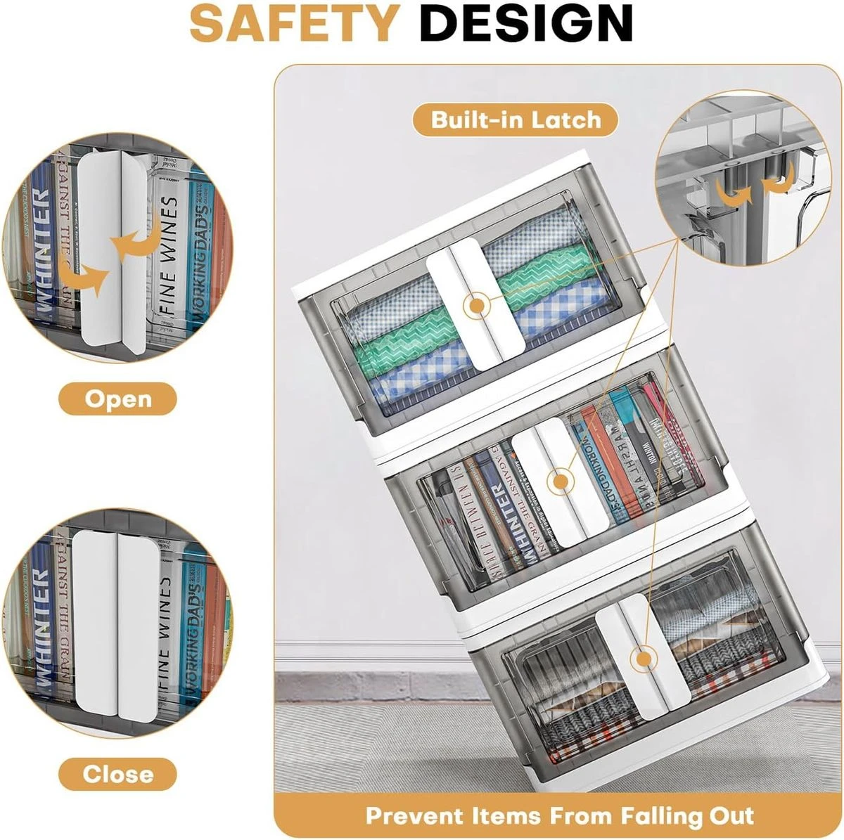 The storage case is made of high-quality PP material, odorless, non-toxic, and environmentally friendly materials that are safe for children. High toughness, abrasion and tear resistance, and has a strong load capacity. Adopts better baffles, more durable and less likely to be damaged. It can be taken out from either front or top, making it easy to insert and remove items. Stack storage boxes with ease to retrieve items and improve functionality compared to traditional storage boxes. The foldable storage case takes 15 seconds and requires no assembly tools. The bottom of the storage box is casters and has grooves, so it can be easily moved even if the storage case is heavy. When not in use, it can be folded and stored in a small gap in the car or interior. Save space, and store everyday clothes, books, toys and other items in a folding container, and close the lid to prevent dust, mold, moisture and insects. You can take it with you when you go camping or other outings. It is also very practical. This container box can be folded for storage. You can put it inside a cabinet, wardrobe, or fold it up to use it as a cabinet, wardrobe or shoe box What's in the box 1 x Storage containers |