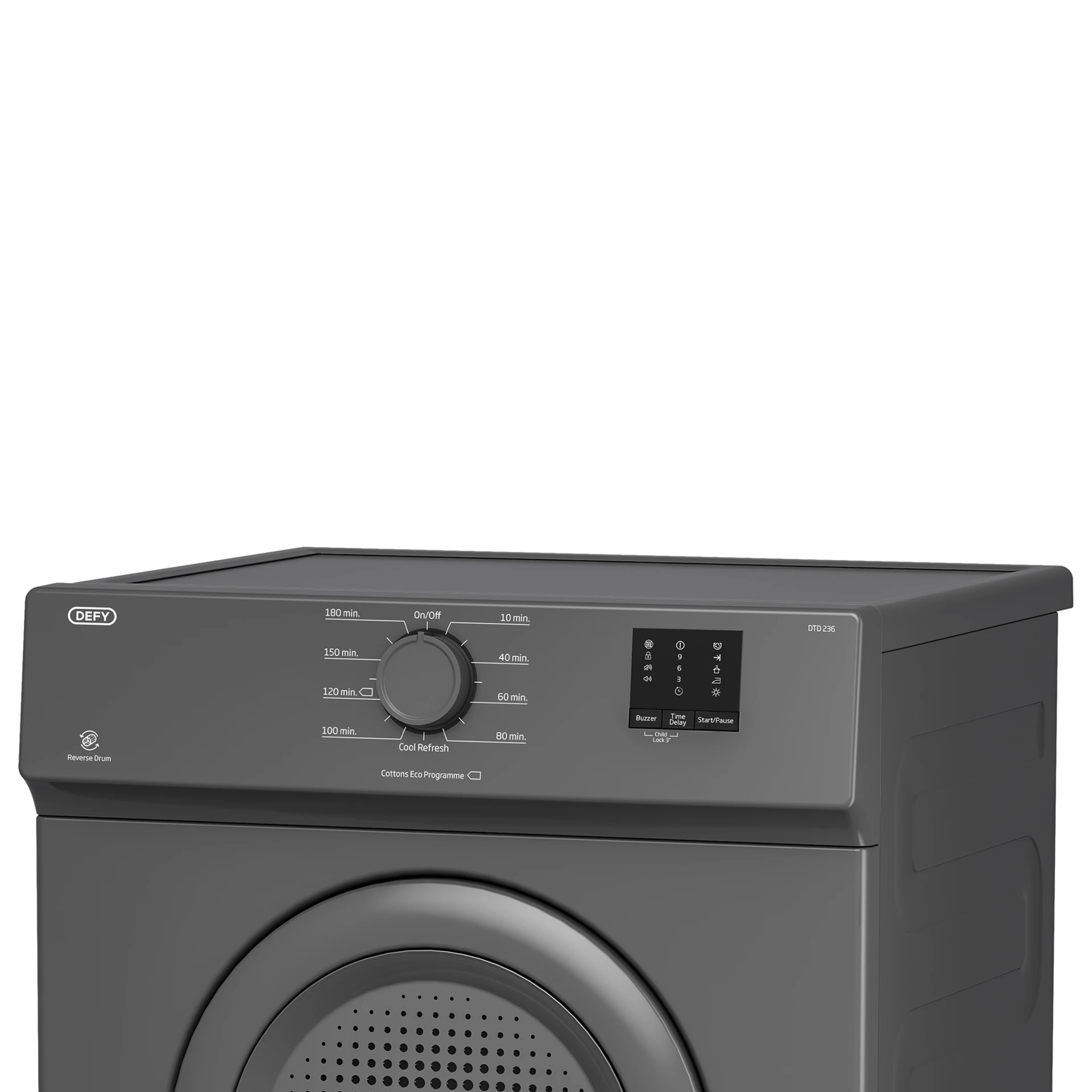 Drying Capacity : 6kg Filter cleaning indicator Timer controlled Red LED display Child lock Reverse drum action Grey 2 Year Warranty + 1 Year Warranty Defy 6kg AirVented Dryer Manhat G DTD236The Defy 6kg Air-Vented Dryer Manhat G DTD236 is a reliable and efficient solution for your laundry needs. With a thoughtful design and advanced features, this dryer ensures your clothes are dried effectively and with care. Ideal for small to medium-sized households, it combines practicality and user-friendly operation. Key Features 6kg Drying Capacity: This dryer is equipped with a 6kg drying capacity, making it perfect for handling moderate laundry loads with ease. Filter Cleaning Indicator: The built-in filter cleaning indicator alerts you when it's time to clean the filter, ensuring the dryer operates at optimal efficiency and prolonging its lifespan. Timer Controlled: The timer-controlled functionality allows you to set drying times according to your preferences, providing flexibility and convenience for your laundry routine. Red LED Display: Featuring a sleek red LED display, the dryer offers clear and easy-to-read information, making it simple to monitor and adjust settings. Child Lock: The child lock function enhances safety by preventing accidental changes to the settings, making it a family-friendly appliance. Reverse Drum Action: The reverse drum action helps reduce creasing and tangling of clothes, ensuring garments come out looking fresh and ready to wear. Modern Design in Grey: The dryer’s modern grey finish fits seamlessly into any home decor, adding a touch of style to your laundry area. Warranty: The Defy 6kg Air-Vented Dryer comes with a 2-year warranty plus an additional 1-year warranty, providing peace of mind and long-term assurance. The Defy 6kg Air-Vented Dryer Manhat G DTD236 is a perfect combination of efficiency, safety, and style. With its user-friendly features, durable construction, and sleek design, it is a great addition to any household looking for a reliable drying solution. |