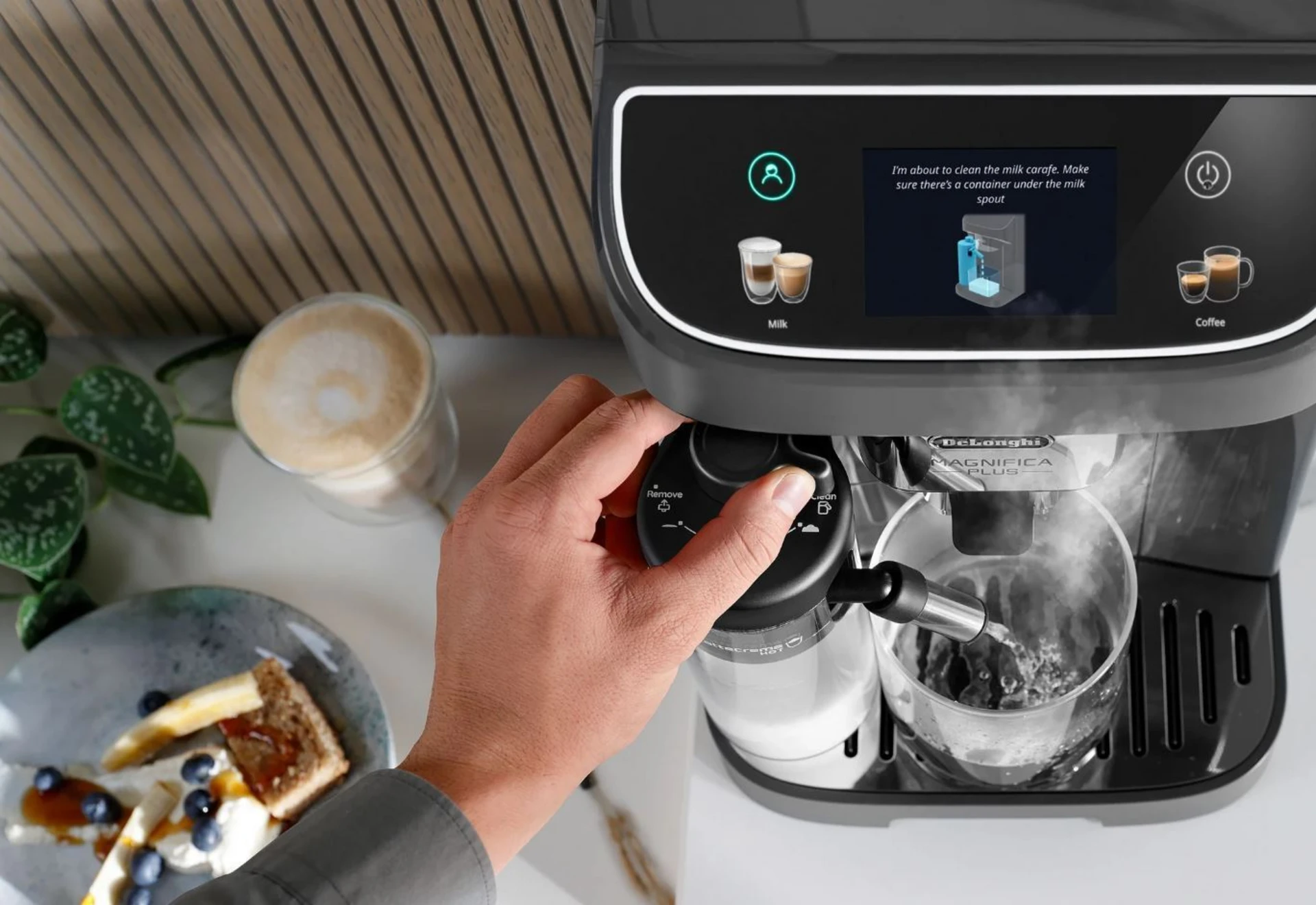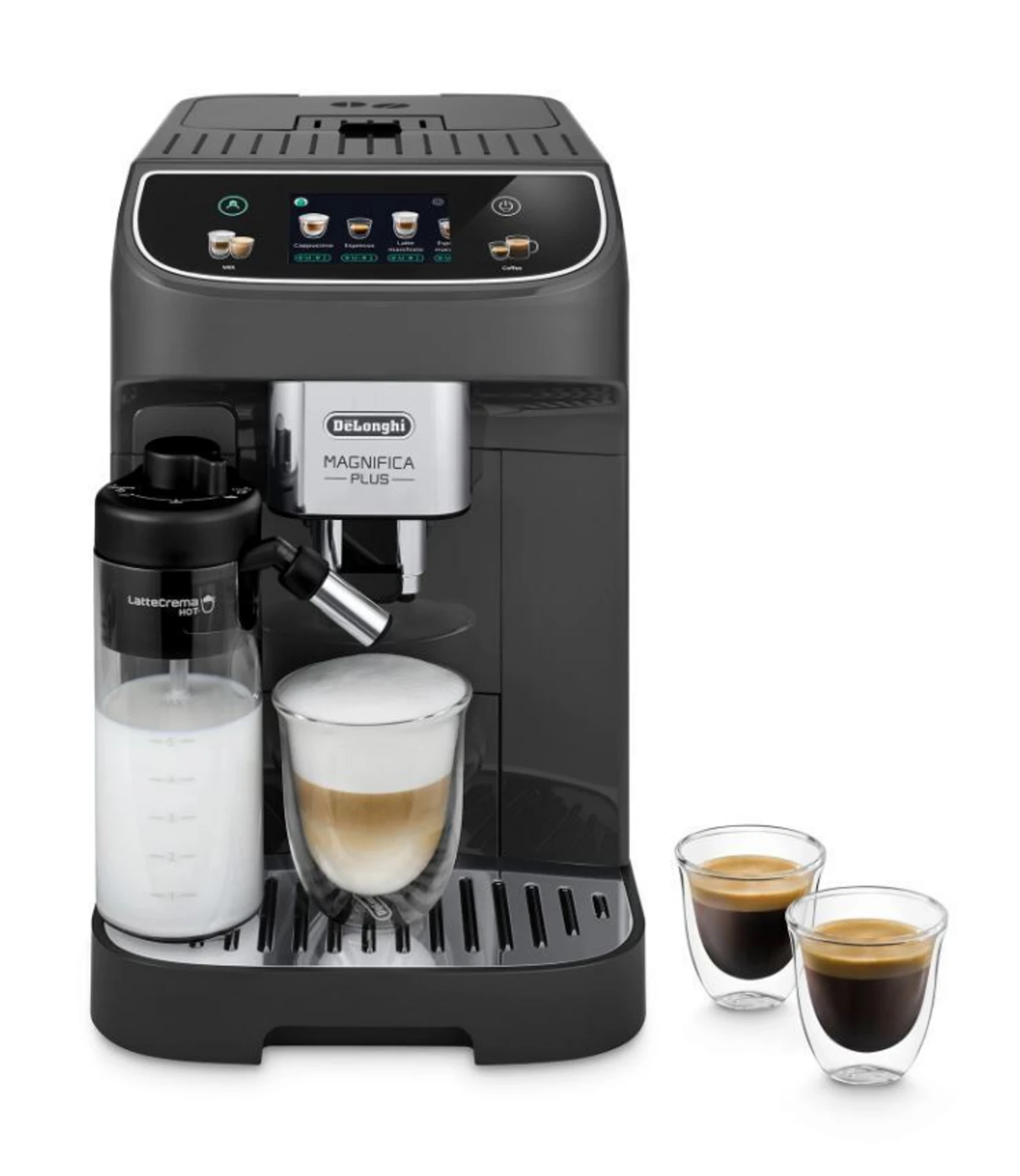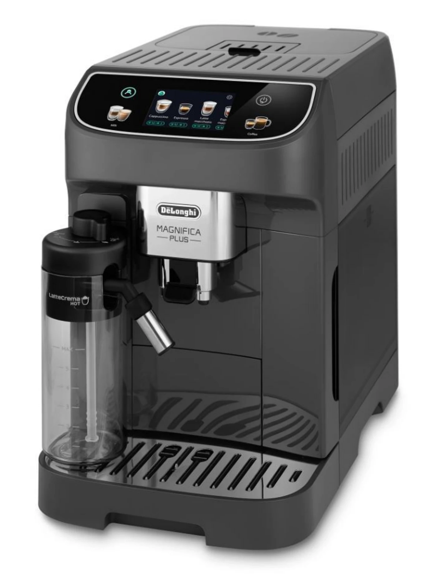 15+ Functions 13 Adjustable grinding settings LatteCrema hot technology 3.5'' TFT coloured display 345ml Milk container capacity DeLonghi Magnifica Plus - Milk ECAM320.61.GExperience café-quality coffee at home with the DeLonghi Magnifica Plus - Milk. This sleek black bean-to-cup machine features a 250g bean container and a 1.9L water tank, perfect for your daily brew. Enjoy 15+ functions and 14 drink options, all easily controlled via a vibrant 3.5" TFT display. Customize your grind with 13 adjustable settings and savor rich, creamy milk foam thanks to the LatteCrema hot technology and steam wand. With convenient features like auto-clean, auto rinse, and a cup warmer, every cup is effortless and delicious. |