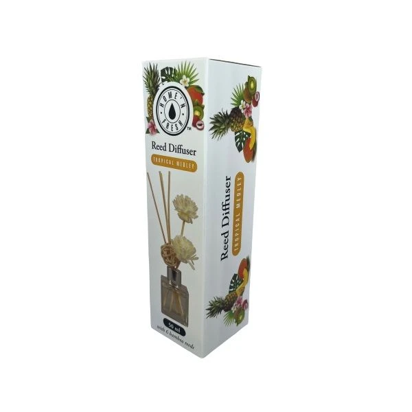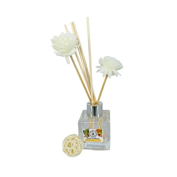 This minimalist reed diffuser has been specifically designed to delicately release fragrance into the air. The reeds are fast-wicking, easy to use and provide a controlled, reliable rate of fragrance release. The impalpable scents float through the room like an elegant, discreet whisper. Fragrances Raspberry Tangerine Vanilla Tropical Medley What's in the box 1 x Diffuser Set - Flower Sticks & 6 Bamboo Reeds |