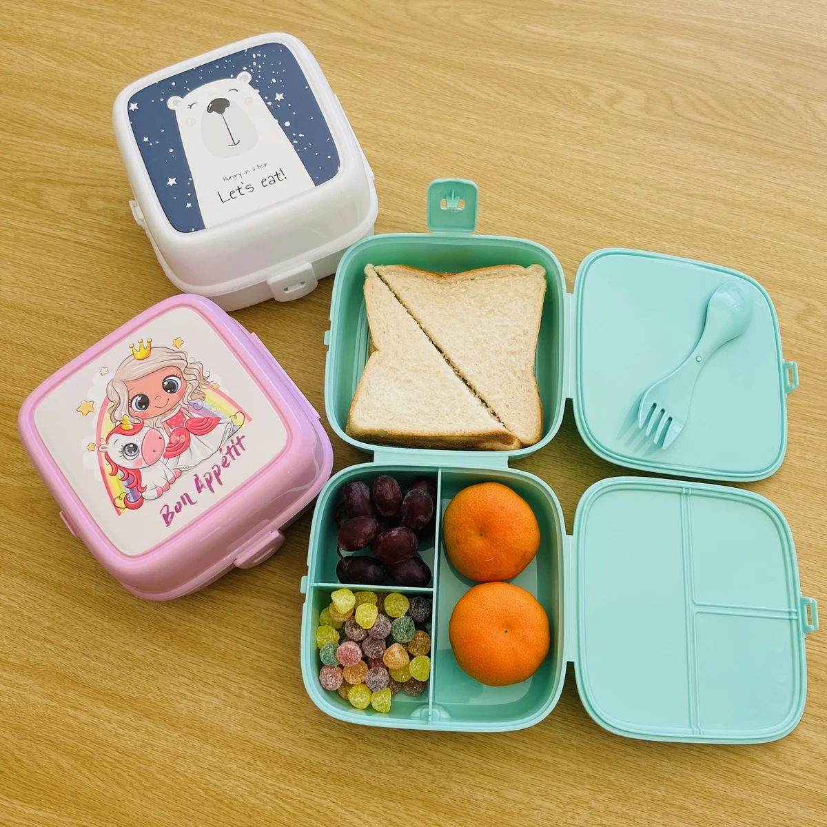 What's in the box 1 x Double Sided Lunch Box & Spoon/Fork |