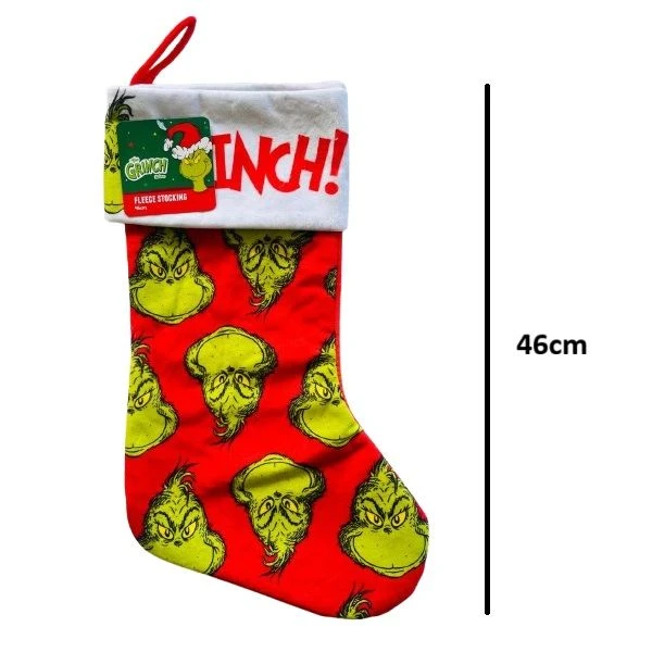 Bring holiday cheer to your home with this playful set of two Dr. Seuss Grinch fleece stockings. Crafted from soft fleece, they're perfect for hanging by the fireplace and filling with festive treats. Celebrate the mischievous spirit of the Grinch while adding a cozy, colorful touch to your Christmas décor. These stockings make holiday traditions even more fun! Size: 46cm What's in the box 2 x Dr Seuss: The Grinch Christmas Fleece Stockings |