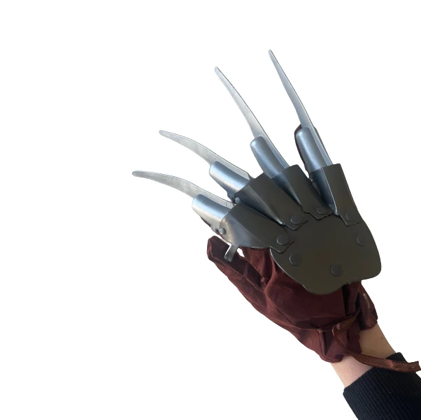 Unleash your inner nightmare with our Halloween Dress-Up Cosplay Freddy Krueger Inspired Glove, featuring one-size-fits-all glove & fake metal claws made of plastic. The glove pays homage to Freddy's menacing metal claw, giving you the authentic look for your Halloween cosplay. The flexible fabric glove provides a snug fit, making it suitable for adults and older teens. Step into the nightmare with our Halloween Dress-Up Cosplay Glove, embodying the fearsome and iconic character and setting the stage for a truly haunting Halloween experience. What's in the box 1 x Glove |